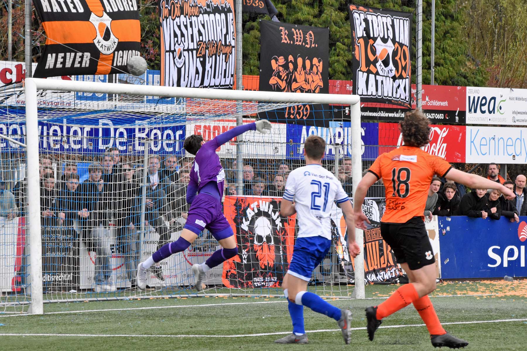 de keeper van VV Katwijk redt.