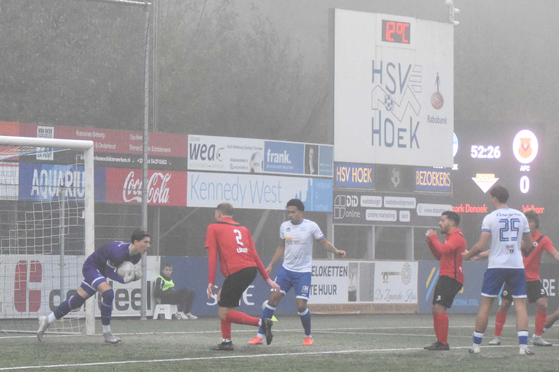 Op sportpark Denoek leek Hoek af te stevenen op een solide overwinning tegen AFC. De Zeeuwse koploper was in de eerste helft de betere ploeg, met spits Din Sula als het grootste gevaar. Ondanks dat hij het lastig had tegen de ervaren Ricardo van Rhijn, bleef Hoek aandringen. Pas vlak voor rust viel de verdiende 1-0. Na een vlotte combinatie tussen Bouirouchane en De Nooijer tikte Jarno Lion beheerst binnen. Na de pauze voerde Hoek de druk verder op. Hoewel het spel slordig bleef, kwam de 2-0 er toch: Steenpoorte hield een diepe bal knap binnen en Sula rondde zijn voorzet koel af. Op dat moment leek er geen vuiltje aan de lucht.