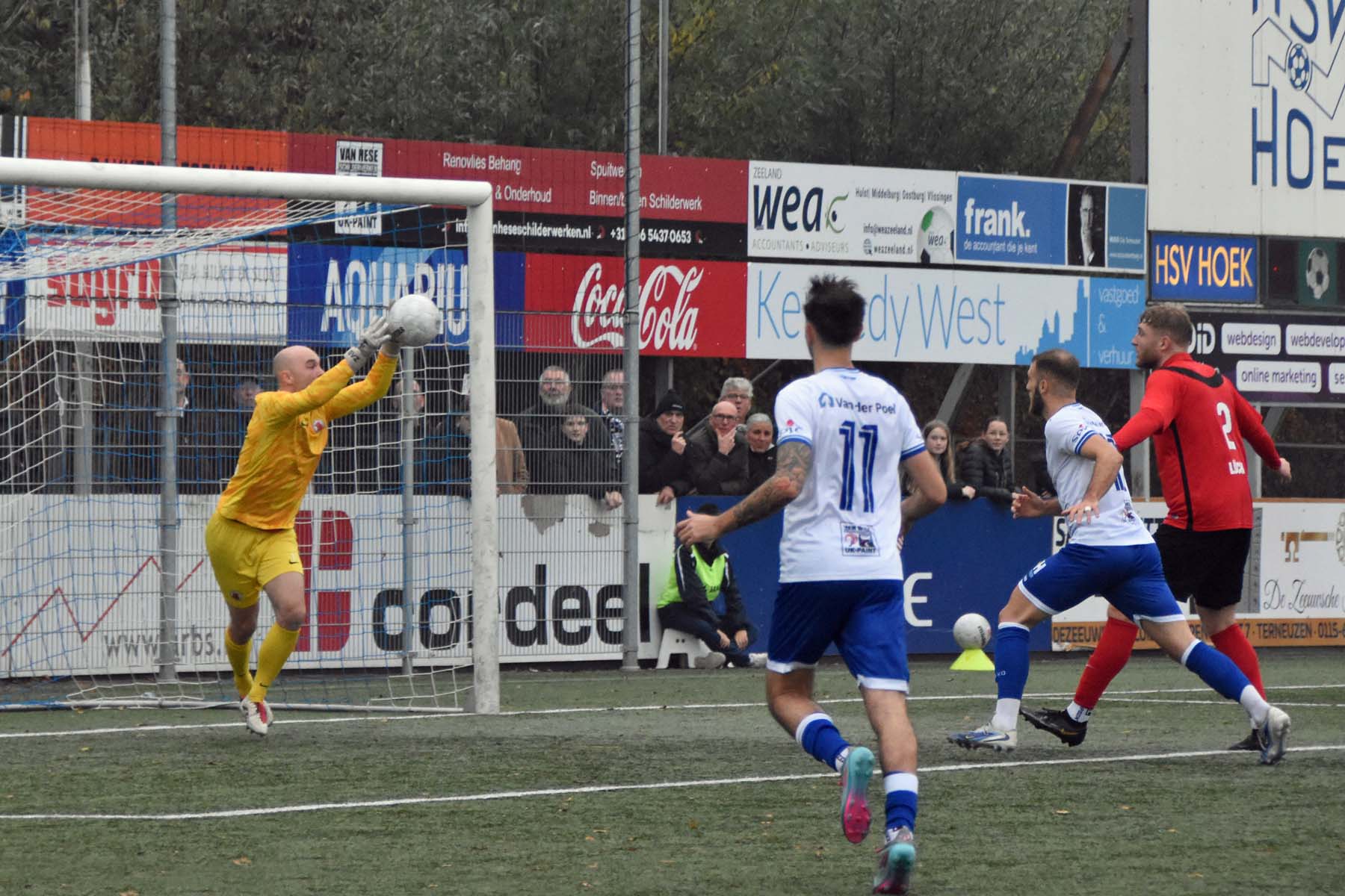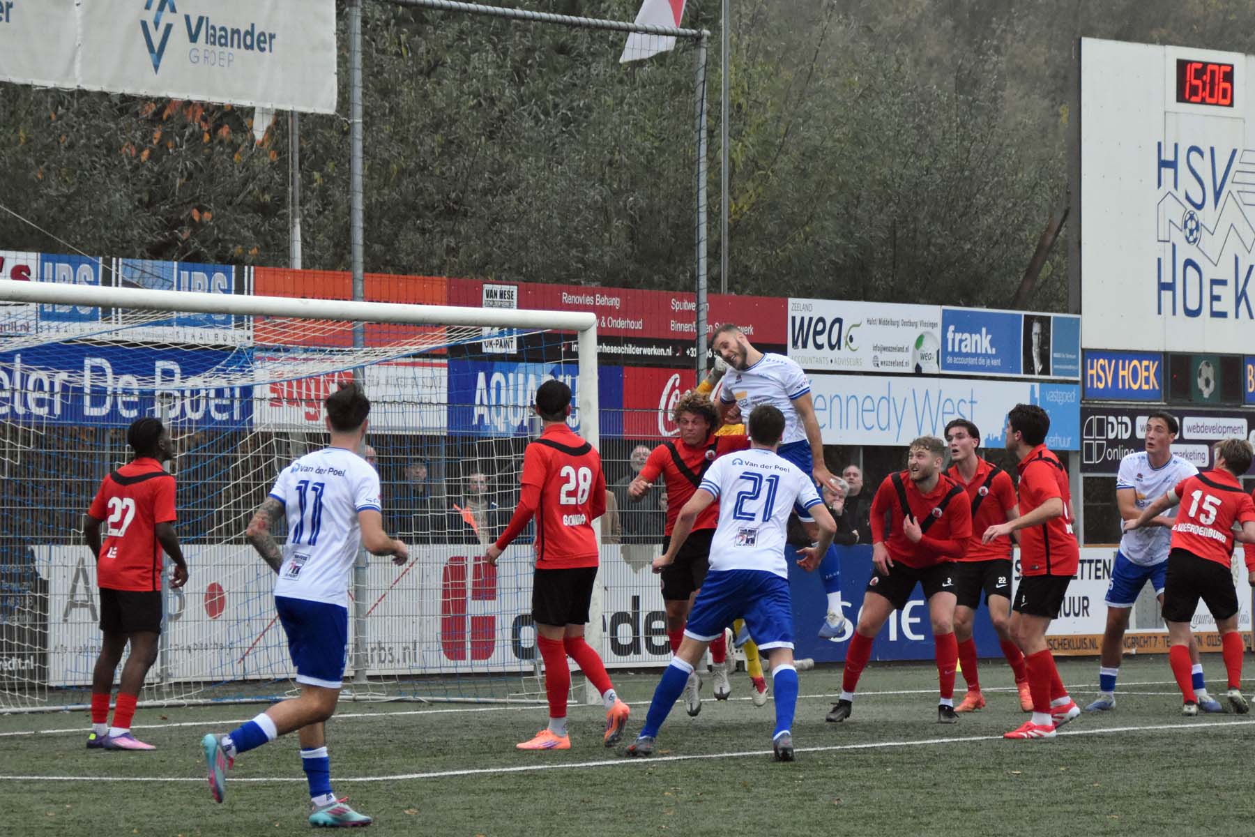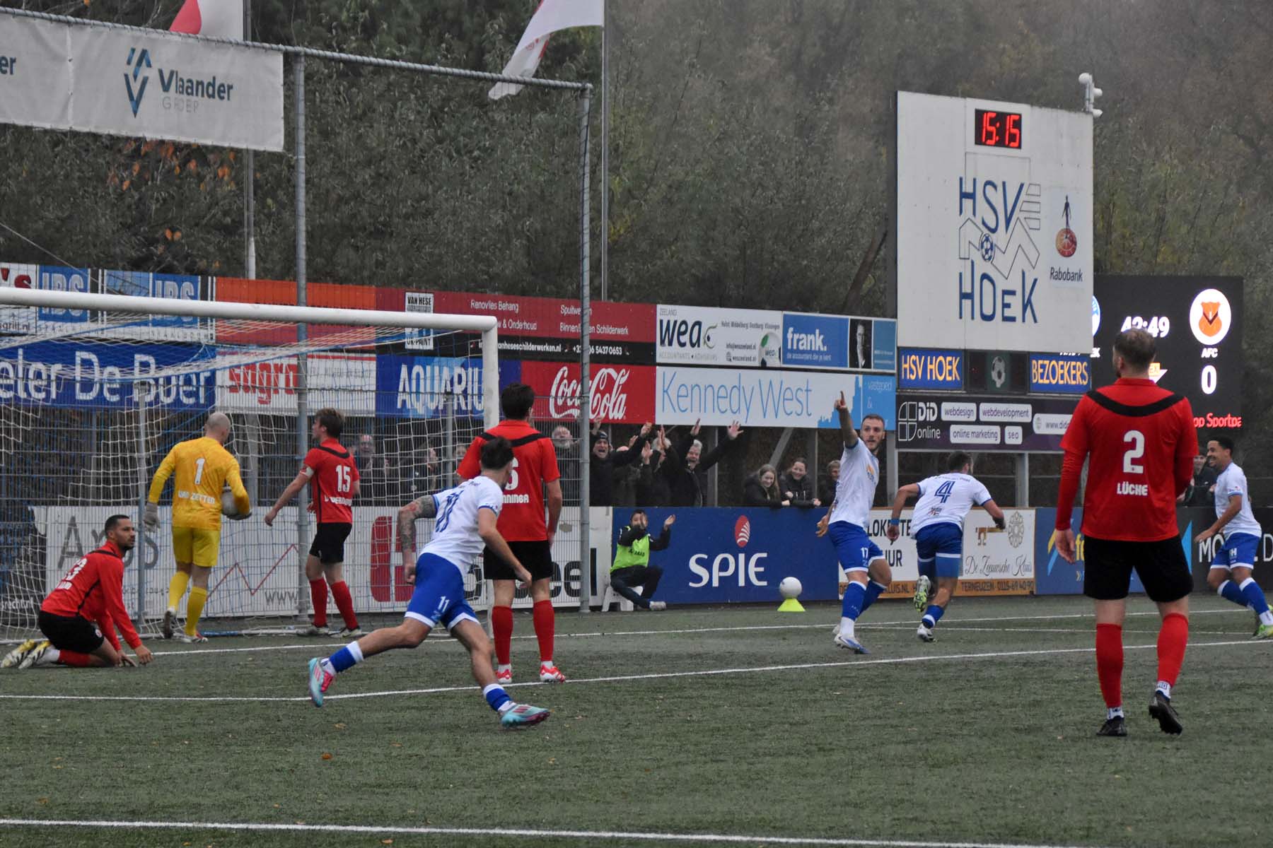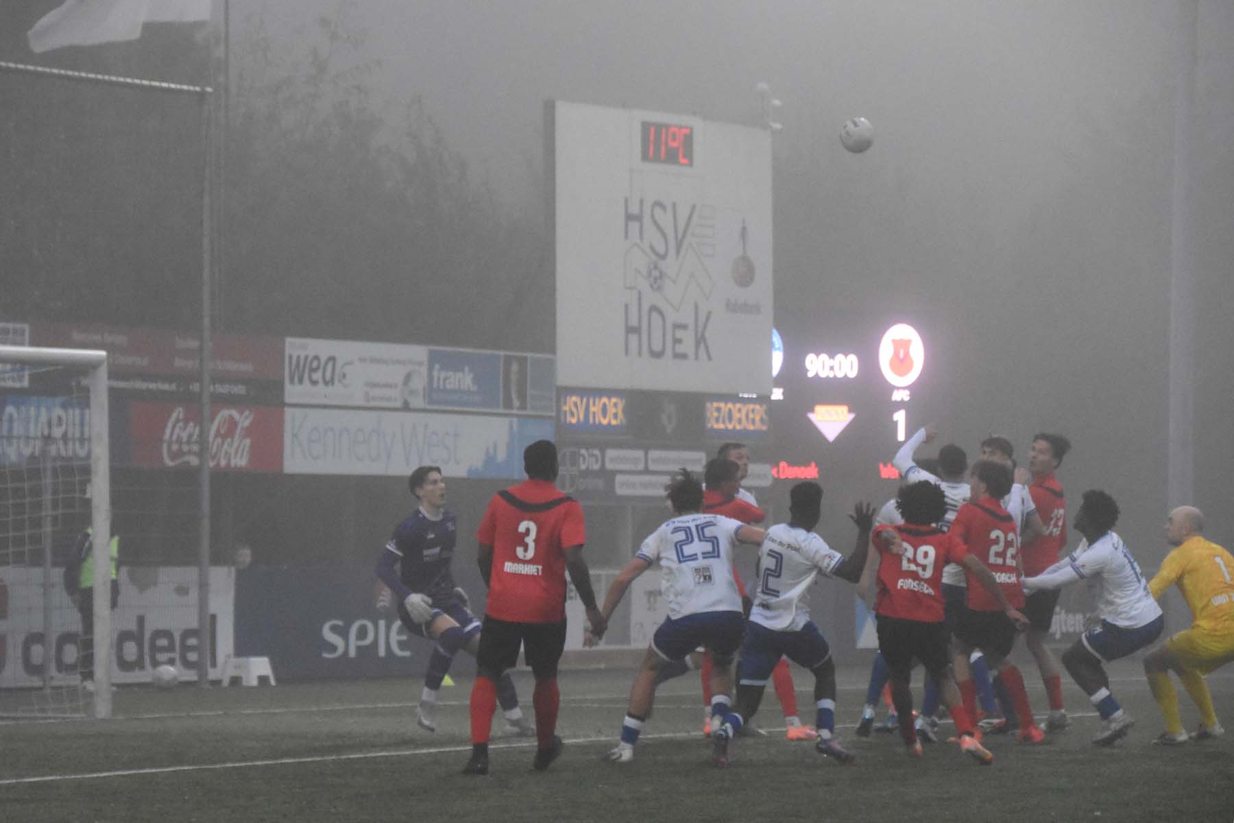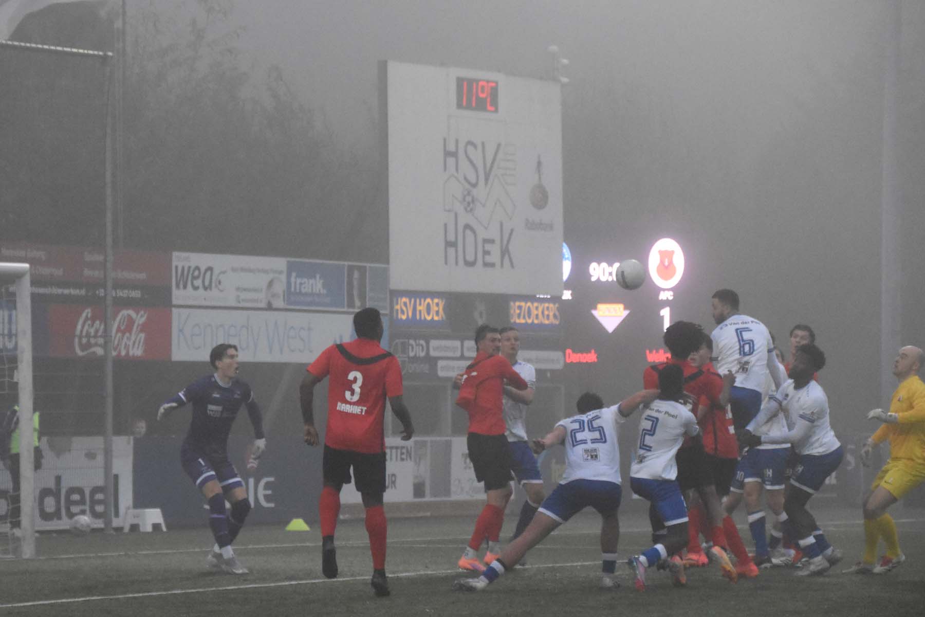 Toch kantelde het duel in het laatste kwartier volledig. AFC, dat weinig had laten zien, profiteerde van de ruimte die Hoek liet vallen. De invallers bleken beslissend. Eerst was het Ties Hovenkamp die ongehinderd kon binnenschieten. In de slotminuten ging het alsnog mis: een corner werd door Radjenio Fonseca met de borst binnen gewerkt. Een mokerslag voor Hoek, dat nog wel wat wissels doorvoerde, maar de grip op de wedstrijd was weg. Gelukkig speelden ook concurrenten HHC Hardenberg en Quick Boys gelijk, waardoor Hoek ondanks het puntenverlies aan kop blijft.