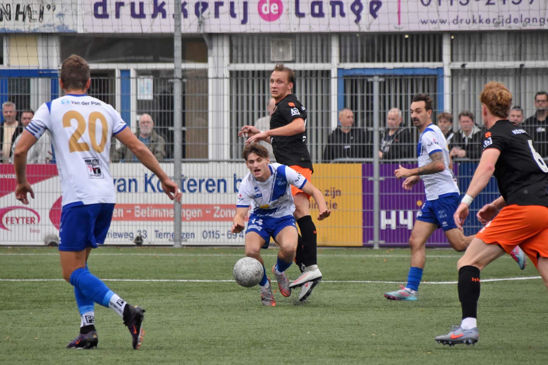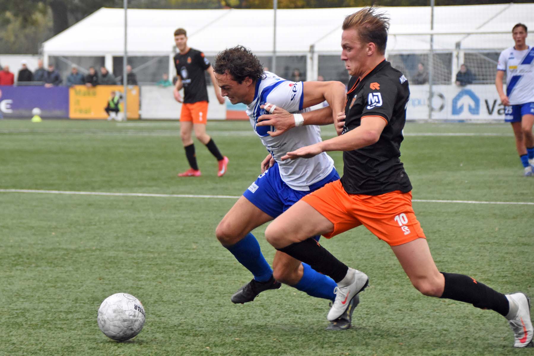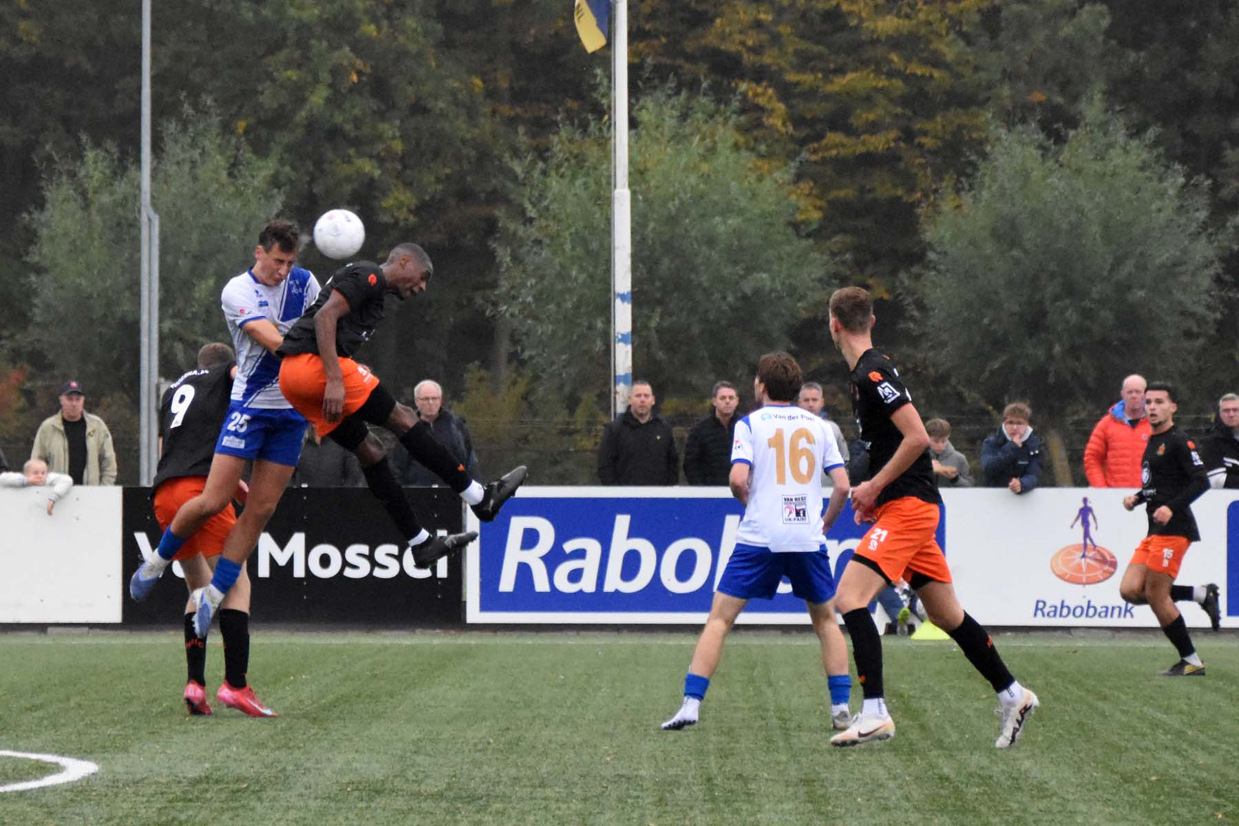 Voor elke bal wordt gestreden. Robbie van Hauter schroomt de duels niet..