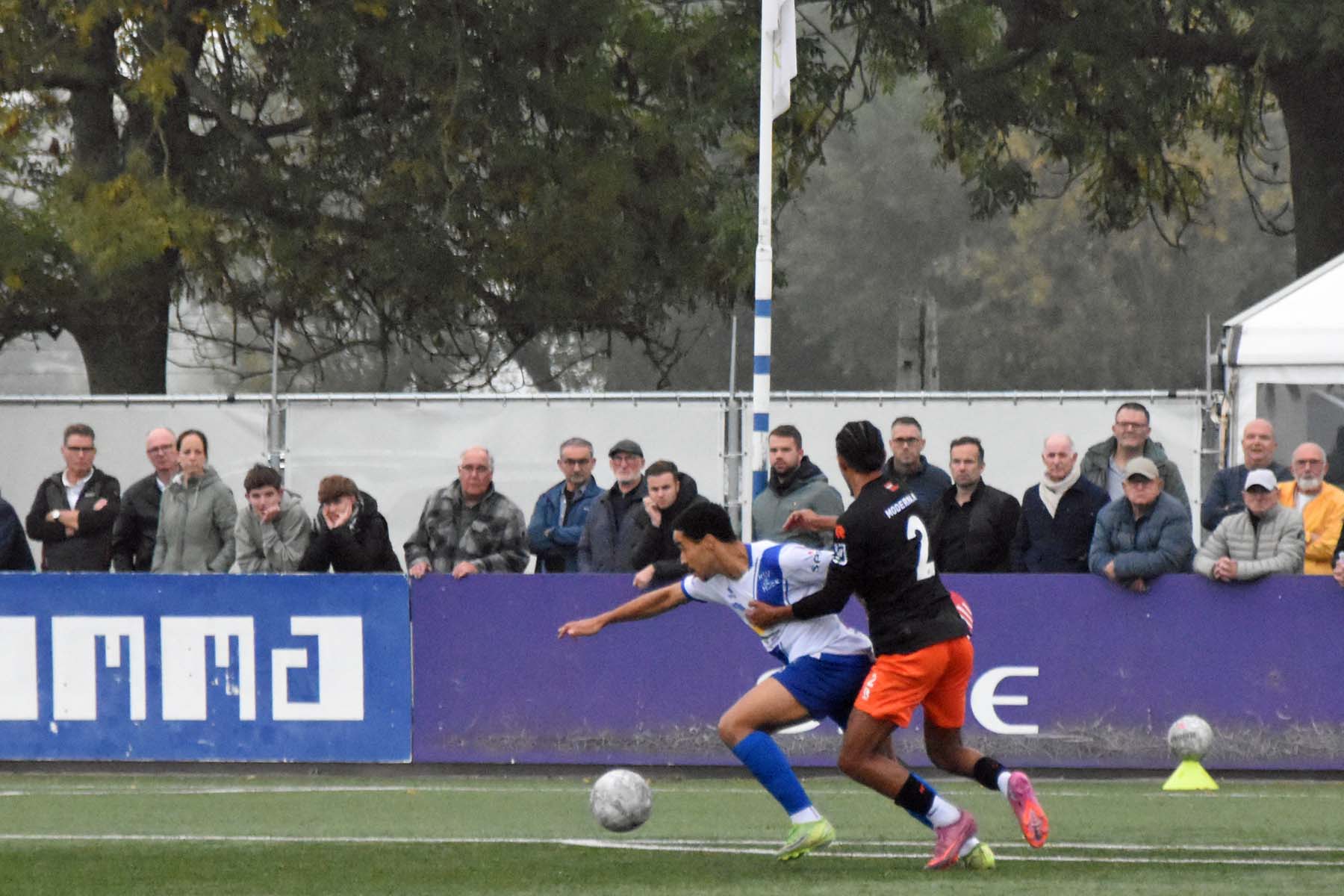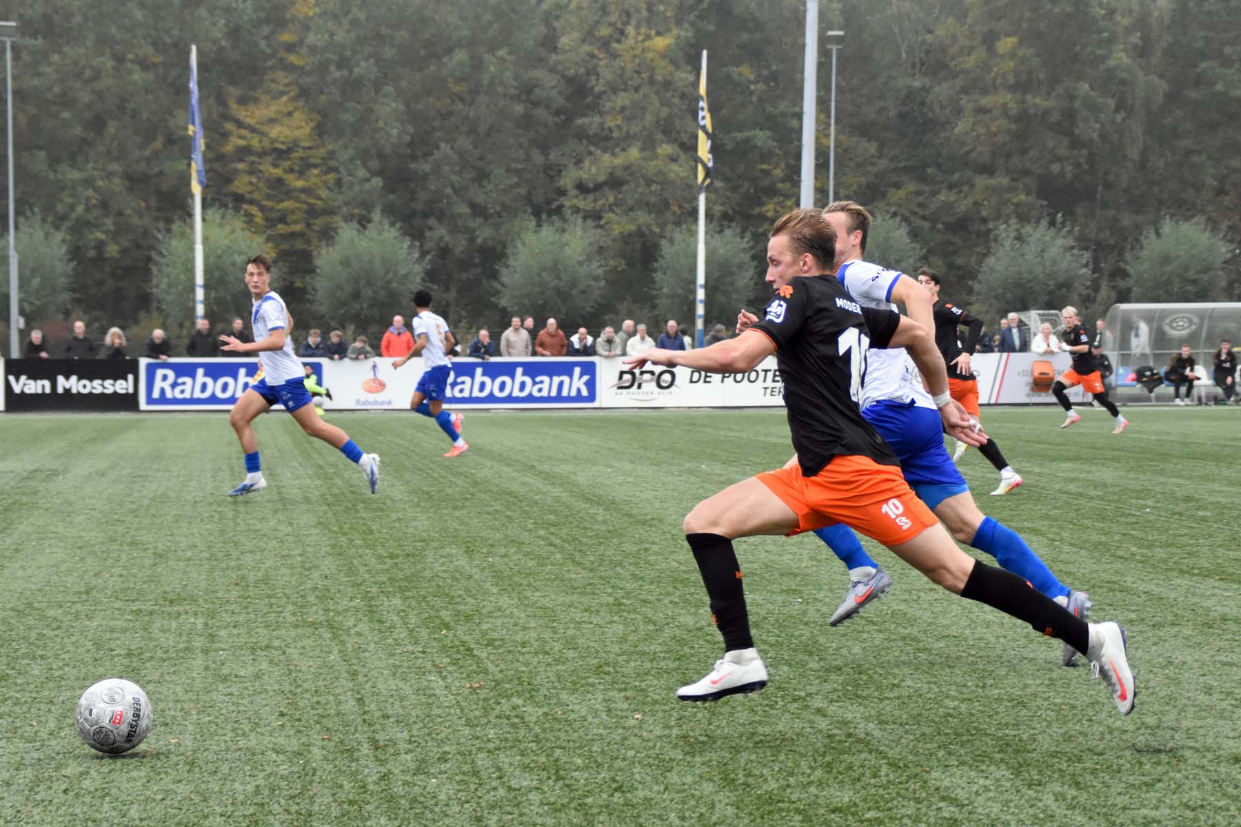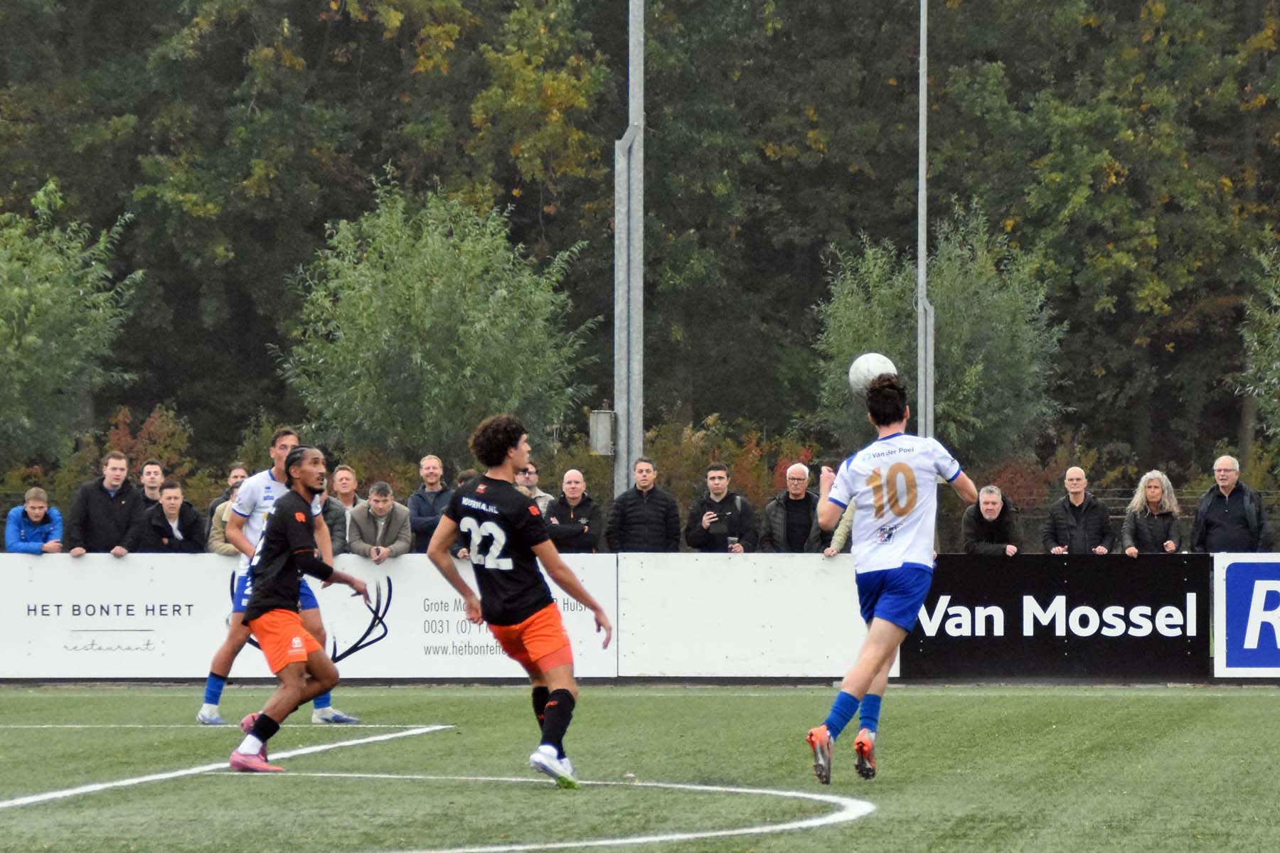 Voor elke bal wordt gestreden. Robbie van Hauter schroomt de duels niet..