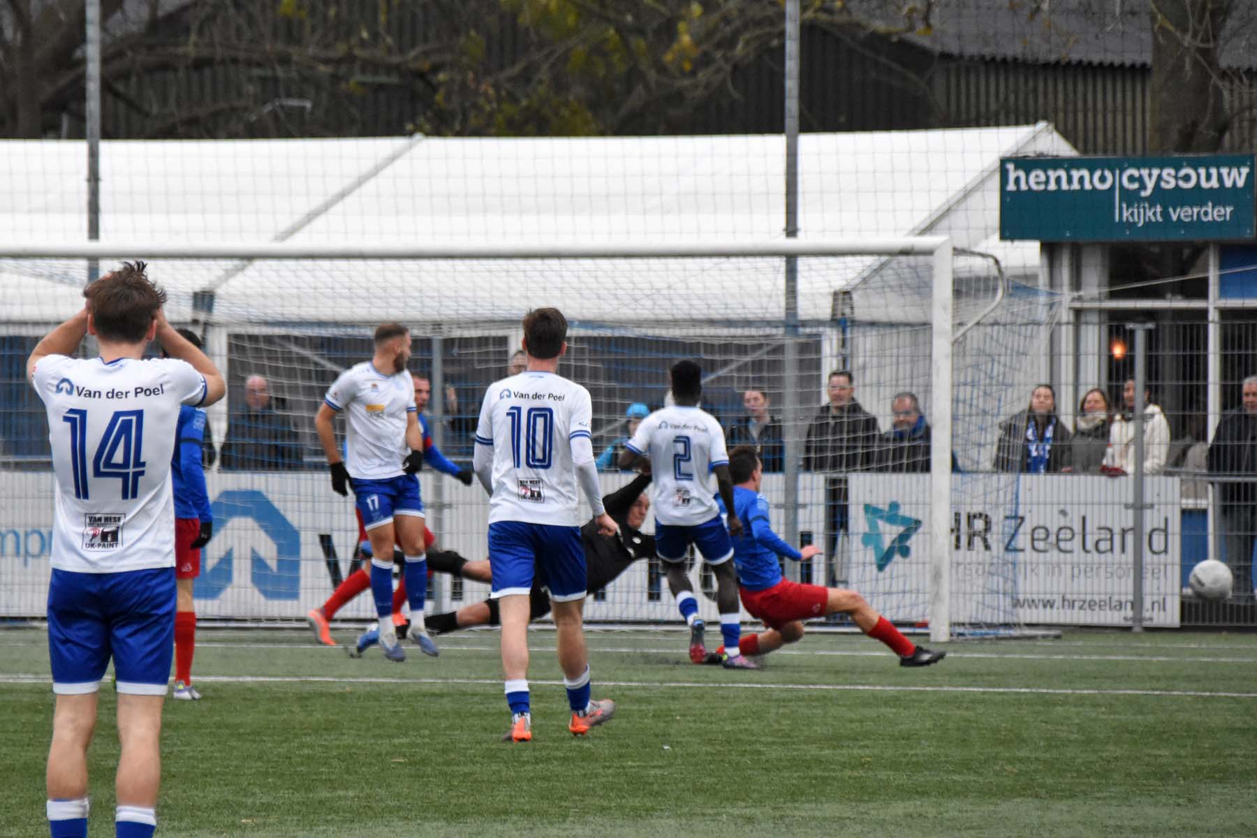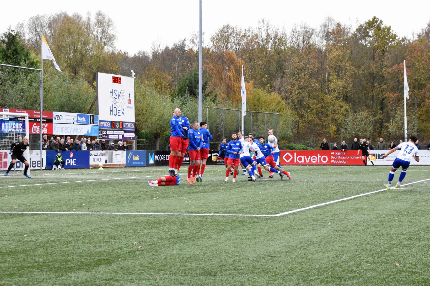 Op papier leek het duel tegen Barendrecht een uitgelezen kans voor Hoek om het doelsaldo op te krikken en de koppositie verder te verstevigen. De Zuid-Hollanders incasseerden al 41 tegentreffers dit seizoen, maar boden verrassend veel tegenstand op sportpark Denoek. In de openingsfase kreeg Din Sula enkele aardige kansen na goede aanvoer van Kevin Hebbelinck, maar tot scoren kwam de spits niet. Pas vlak voor rust werd de ban gebroken. Gertjan Martens, de Belgische aanvoerder van Hoek, tikte alert binnen bij de tweede paal na een strakke voorzet van Wout den Engelsman. Dat leek de opmaat voor een comfortabele middag, maar Hoek slaagde er niet in om door te drukken.