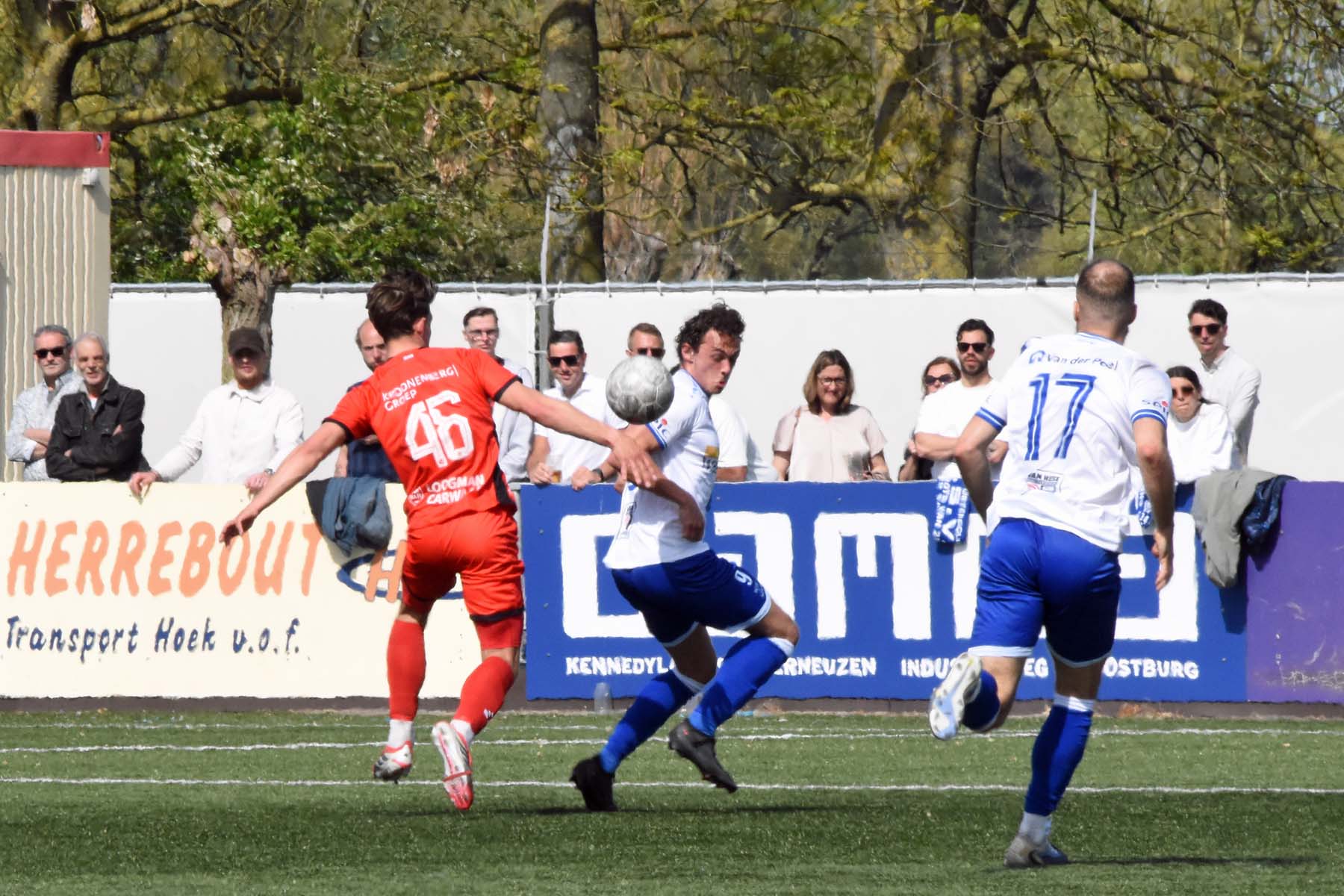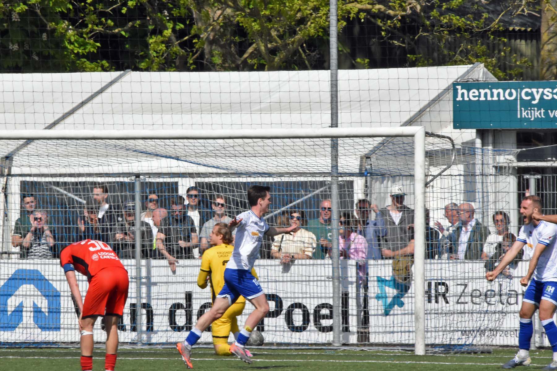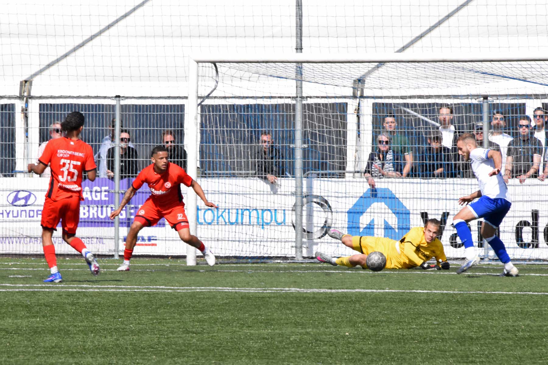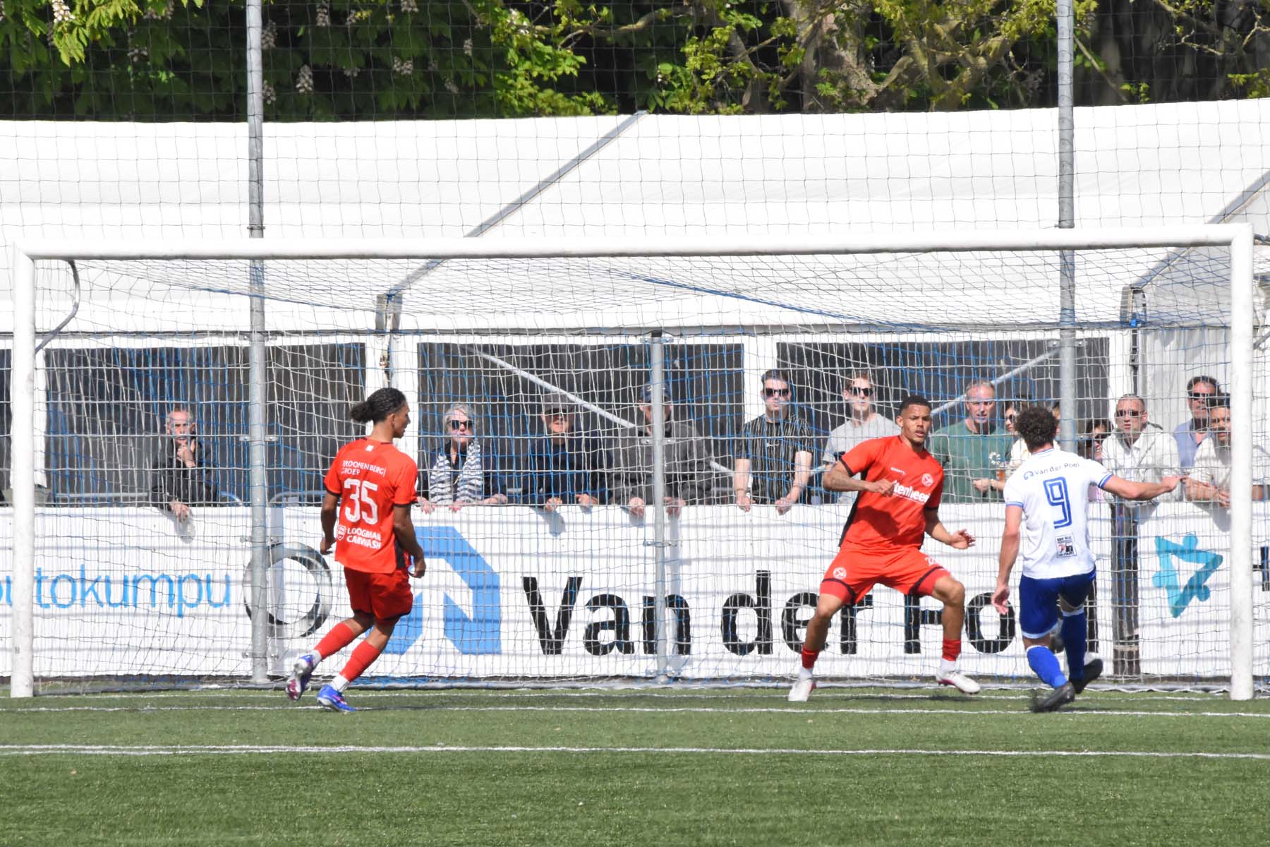 veel supporters van HSV Hoek vragen zich af "is die bal over de lijn?"