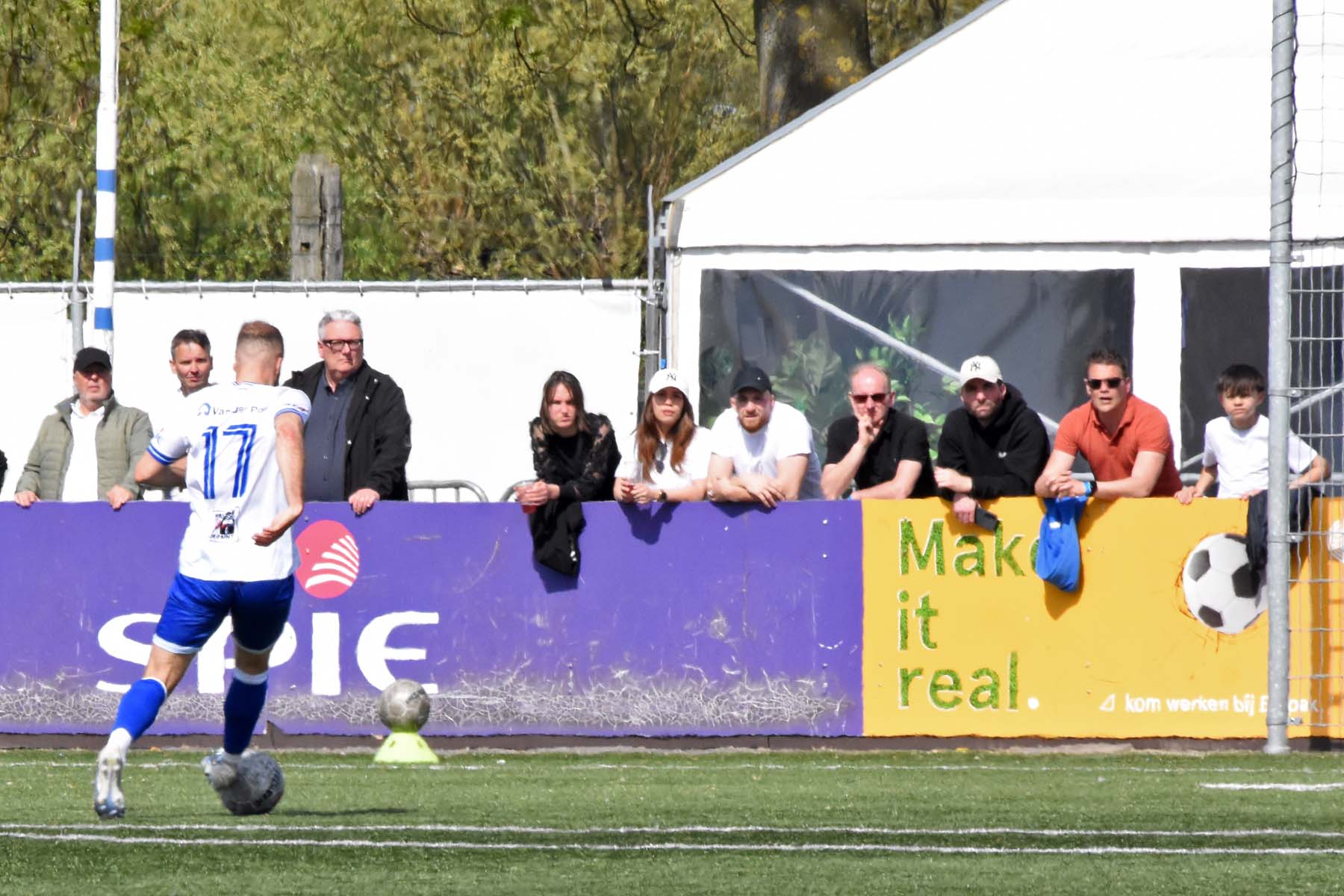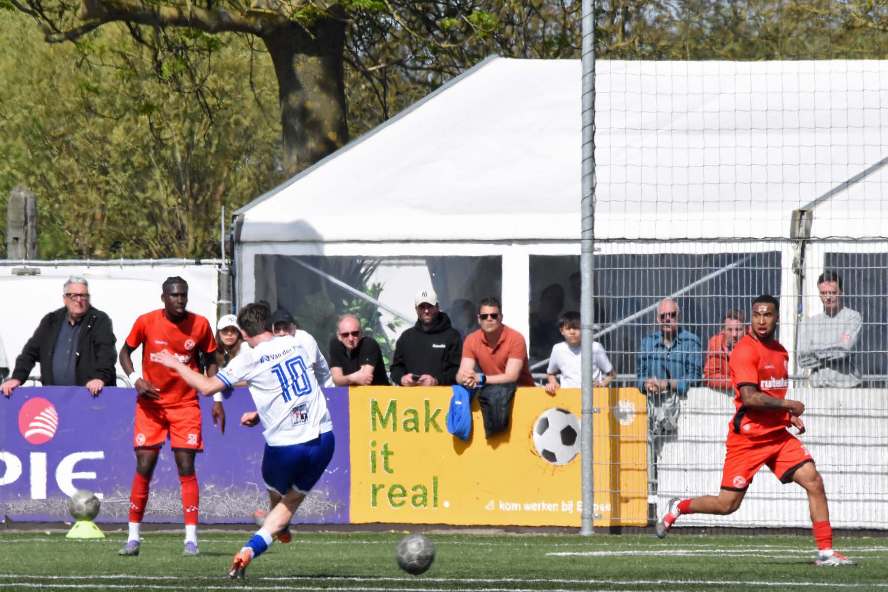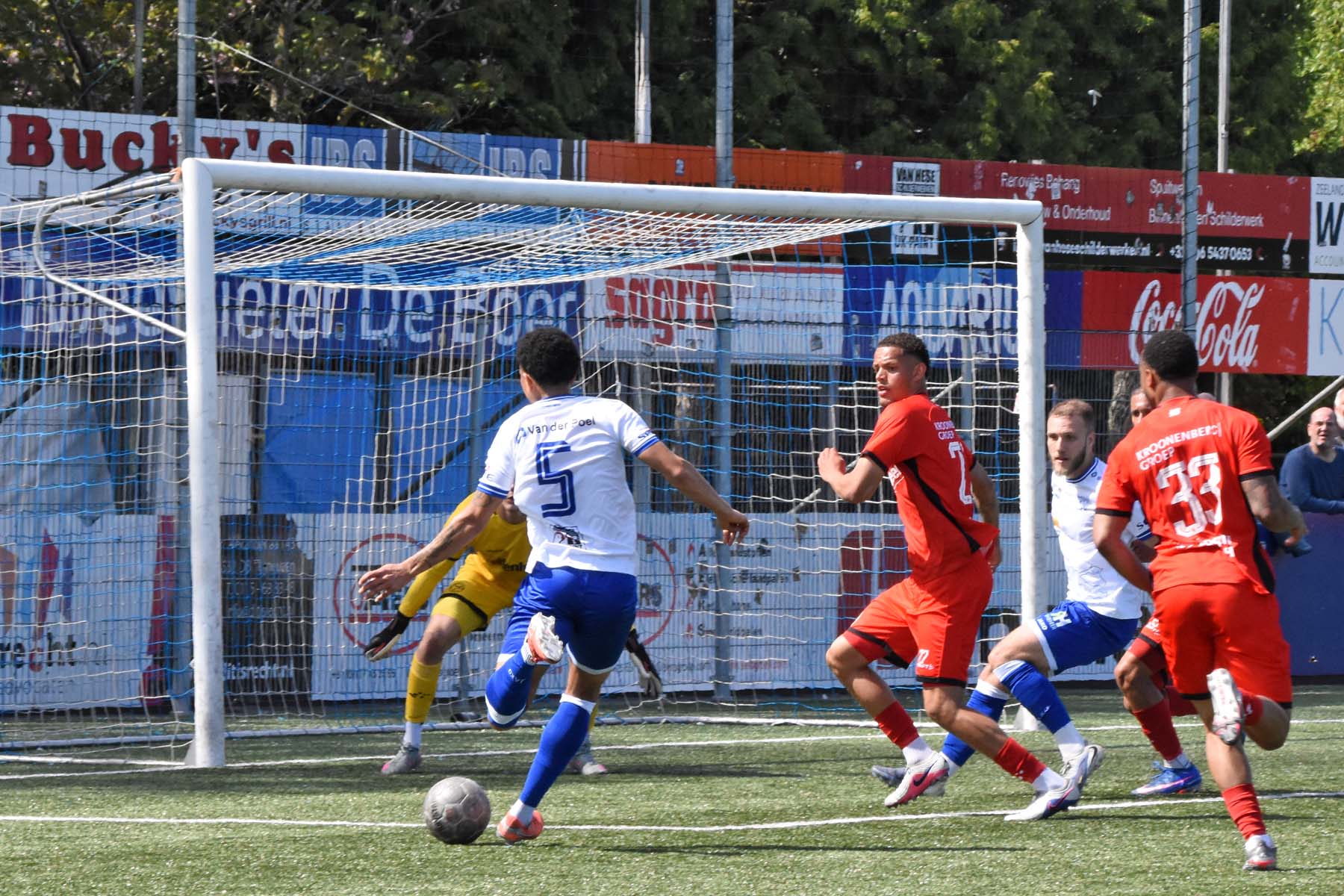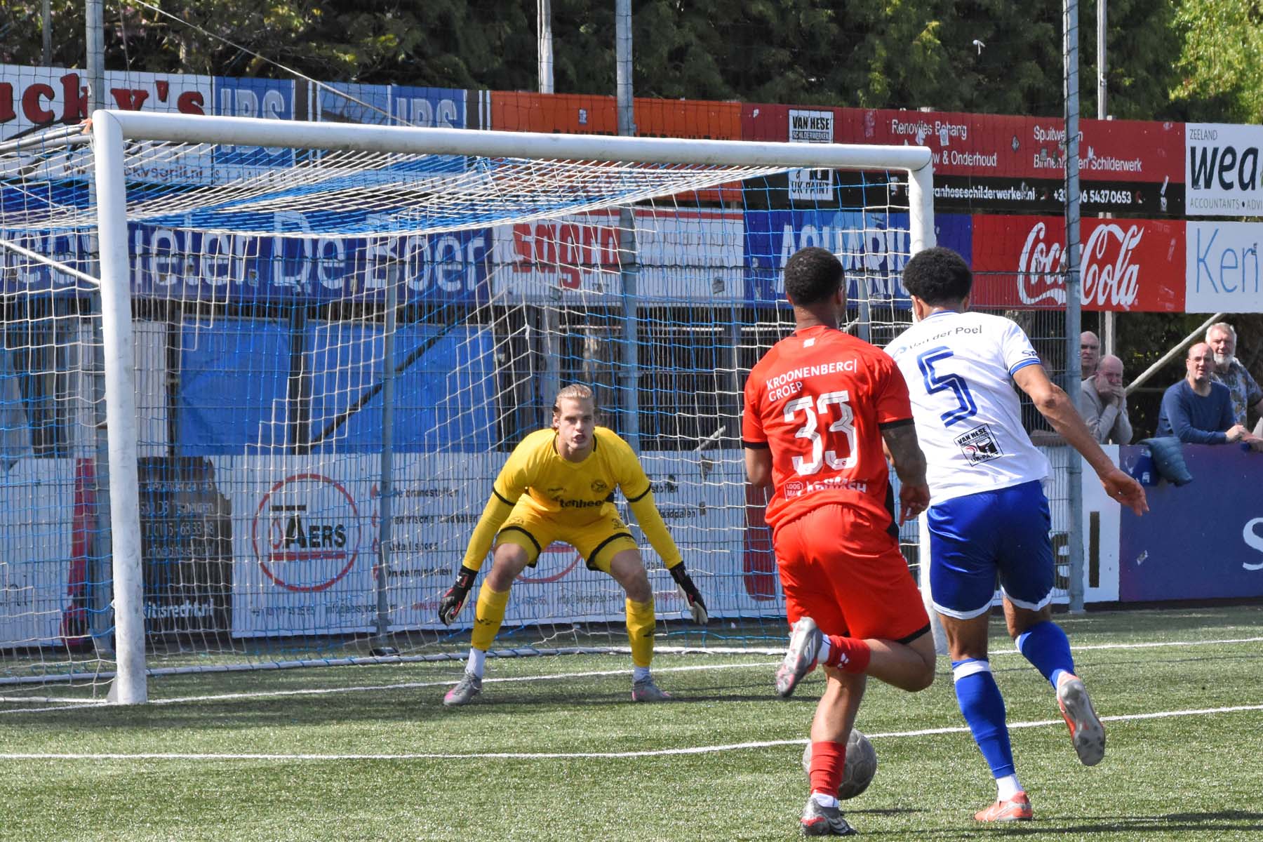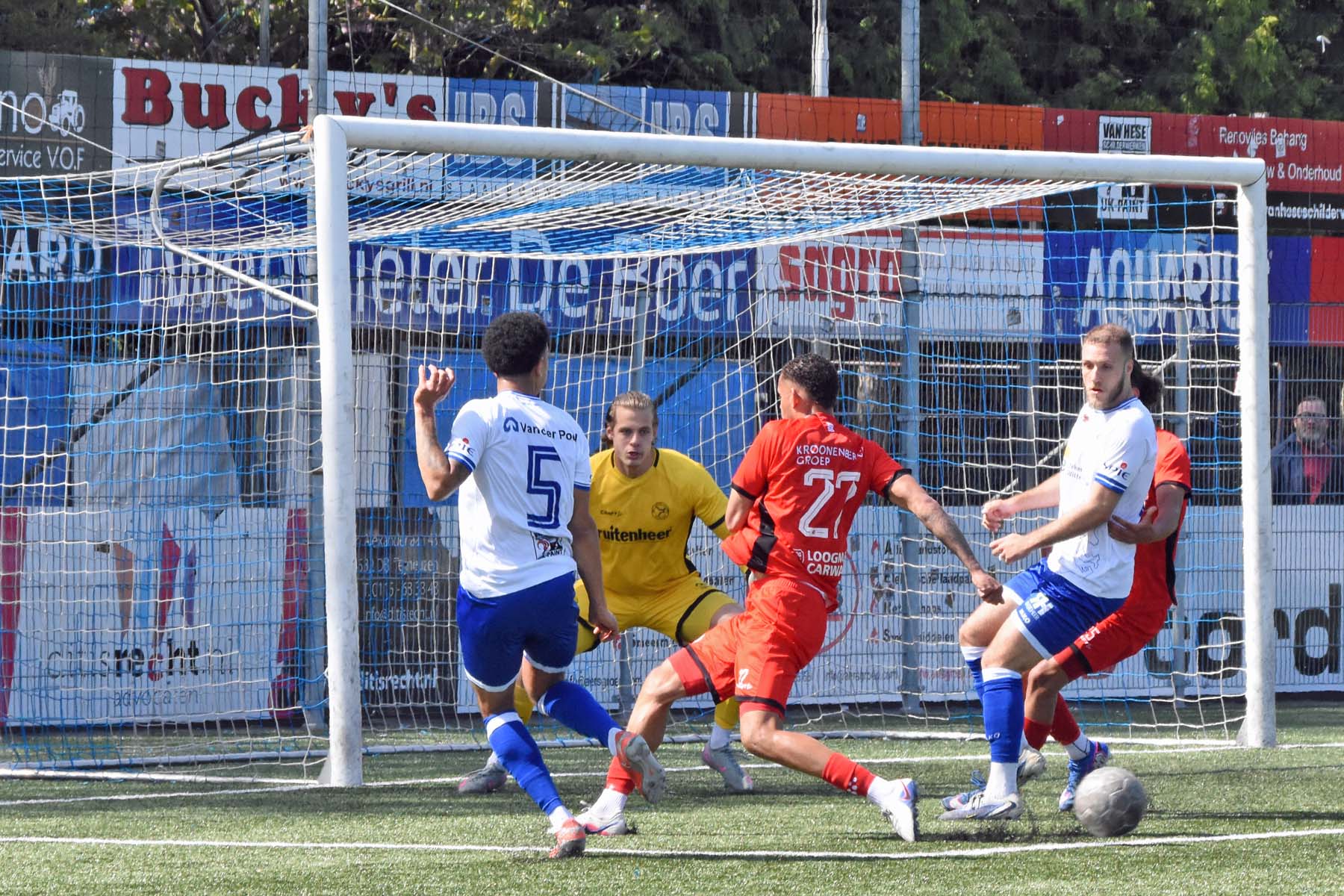veel supporters van HSV Hoek vragen zich af "is die bal over de lijn?"