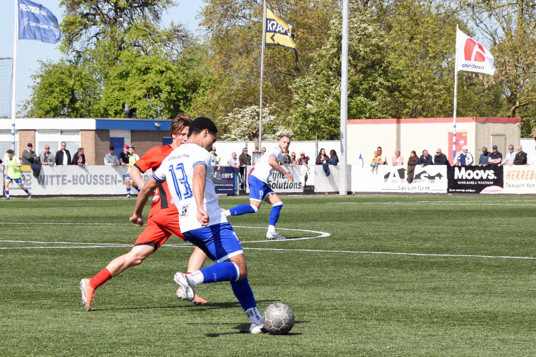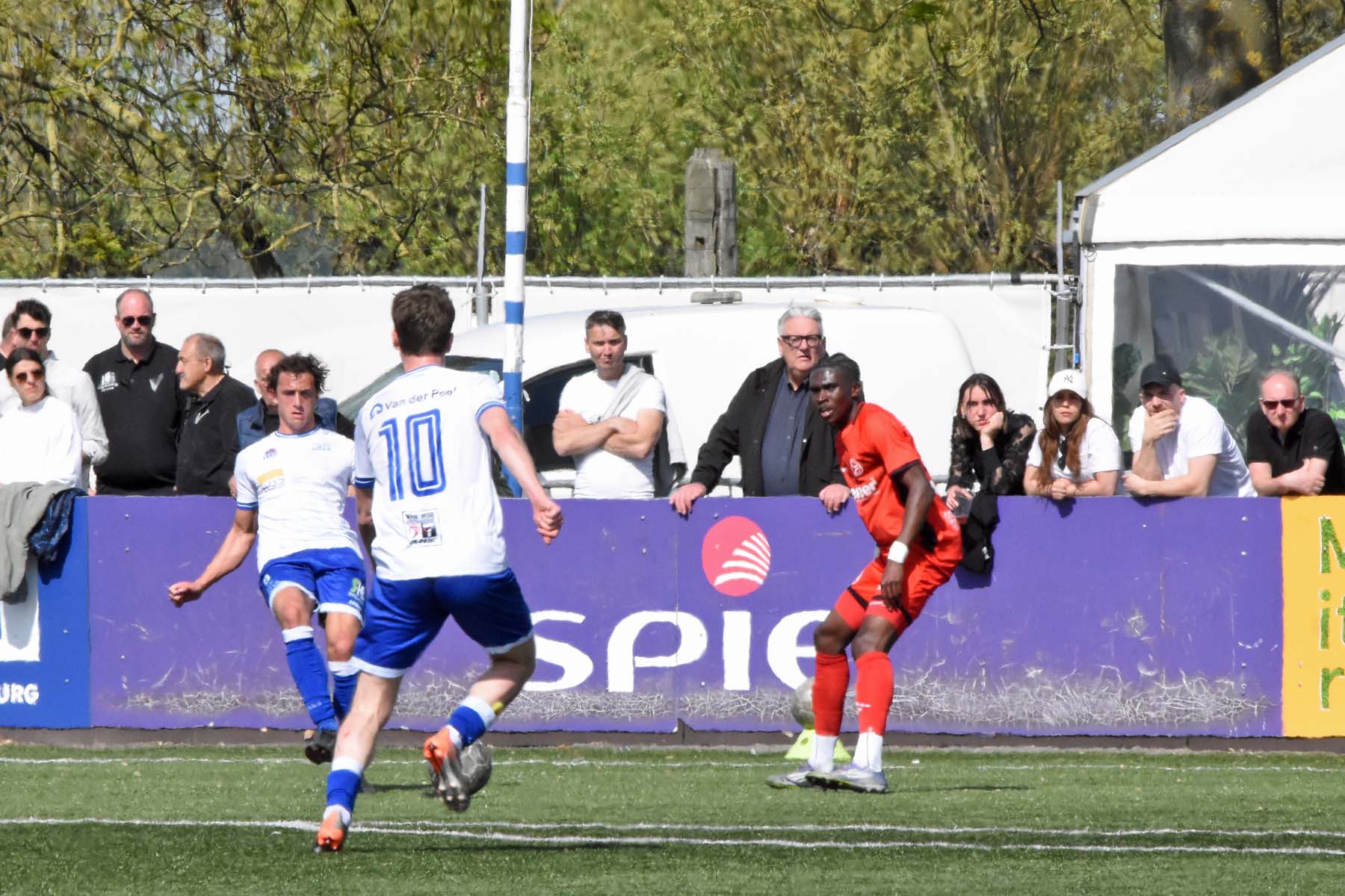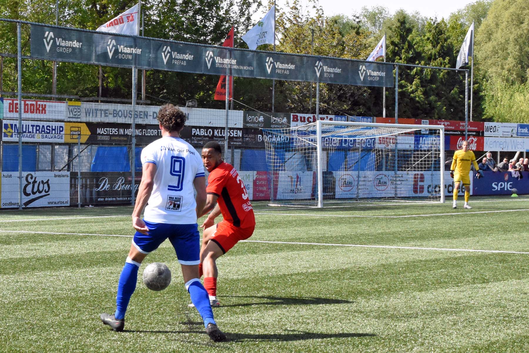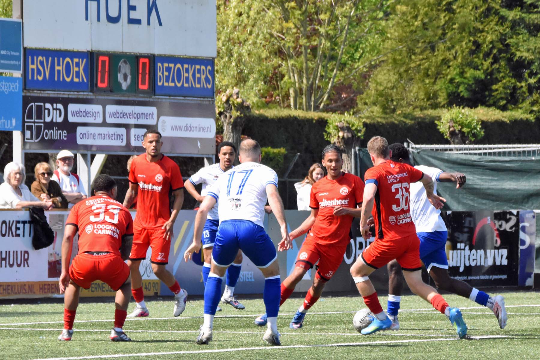de bal breed te leggen, helaas achter spits Din Sula. De supporters van HSV Hoek vragen zich af "Waarom schoot hij niet zelf?"