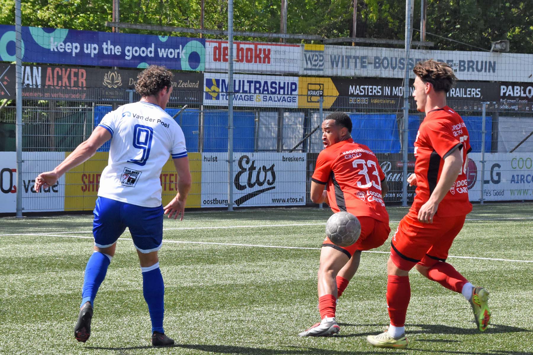 Sylvio Hage. De bal bot net voordat Sylvio Hage kan uithalen..