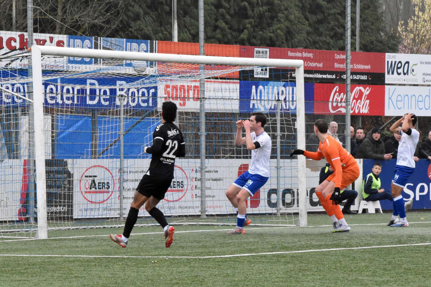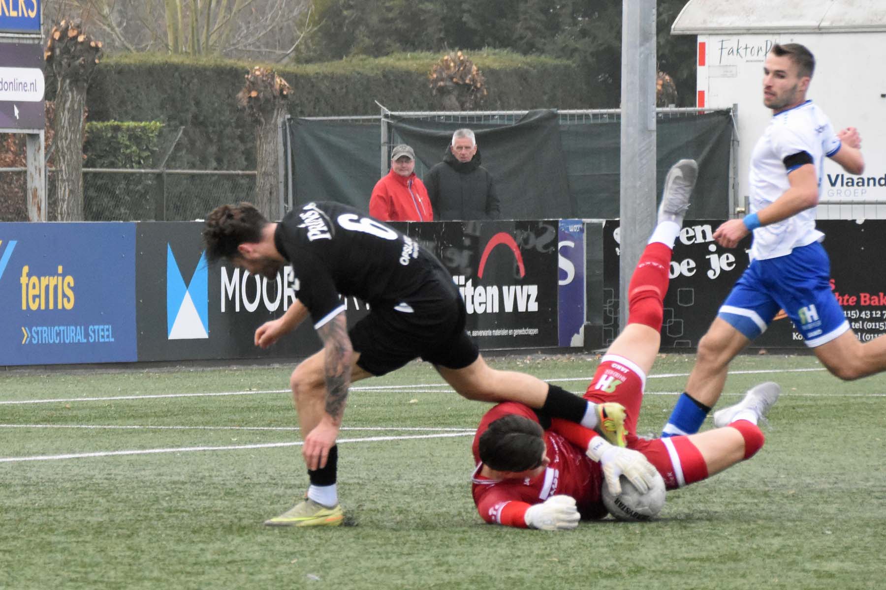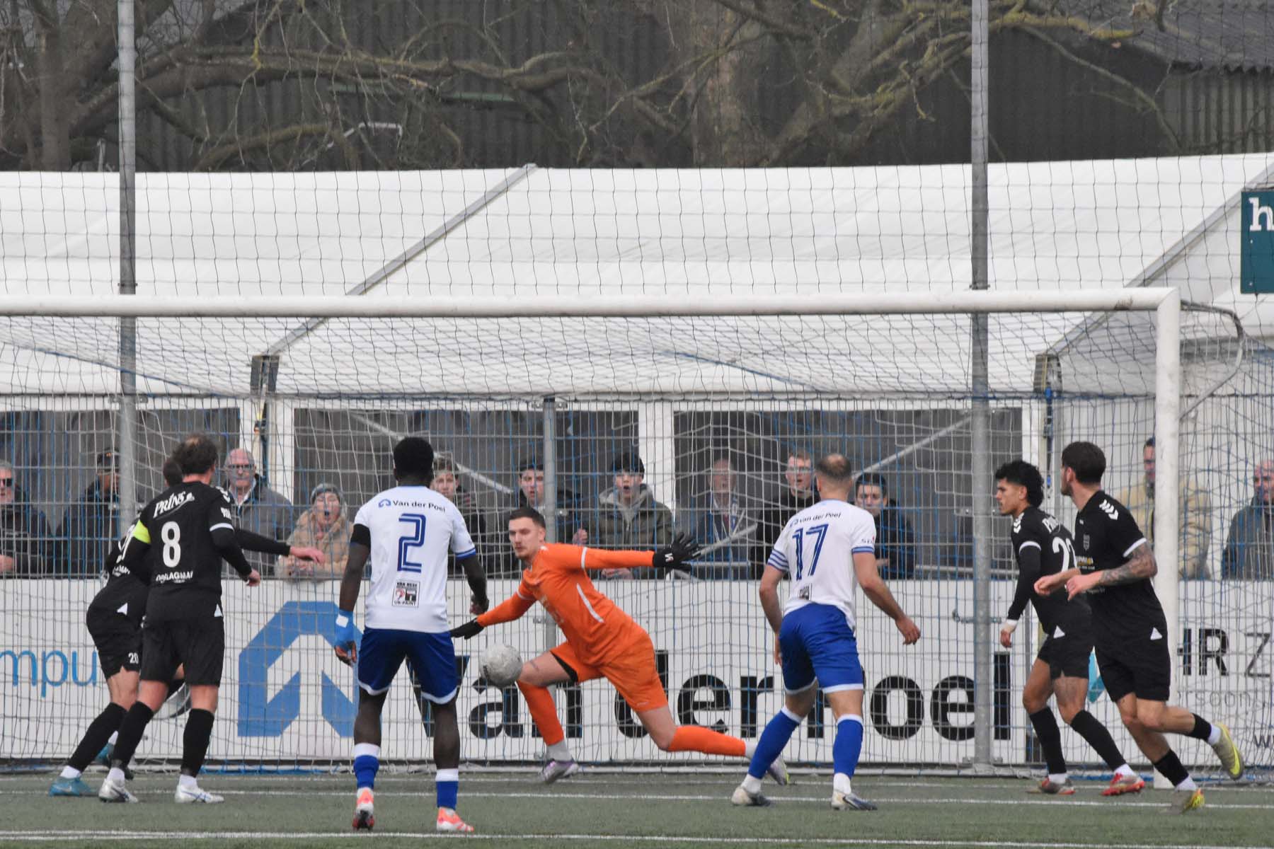 Uit het niets viel rond de twintigste minuut de 0-1. GVVV ontsnapte via een counter en Arwin van Soest dwong Finn Murre tot een knappe redding. Bij de daaropvolgende hoekschop ging het alsnog mis. Murre bokste de bal bij de eerste paal ongelukkig tegen Justin Spies aan, waarna de bal het doel in rolde.
