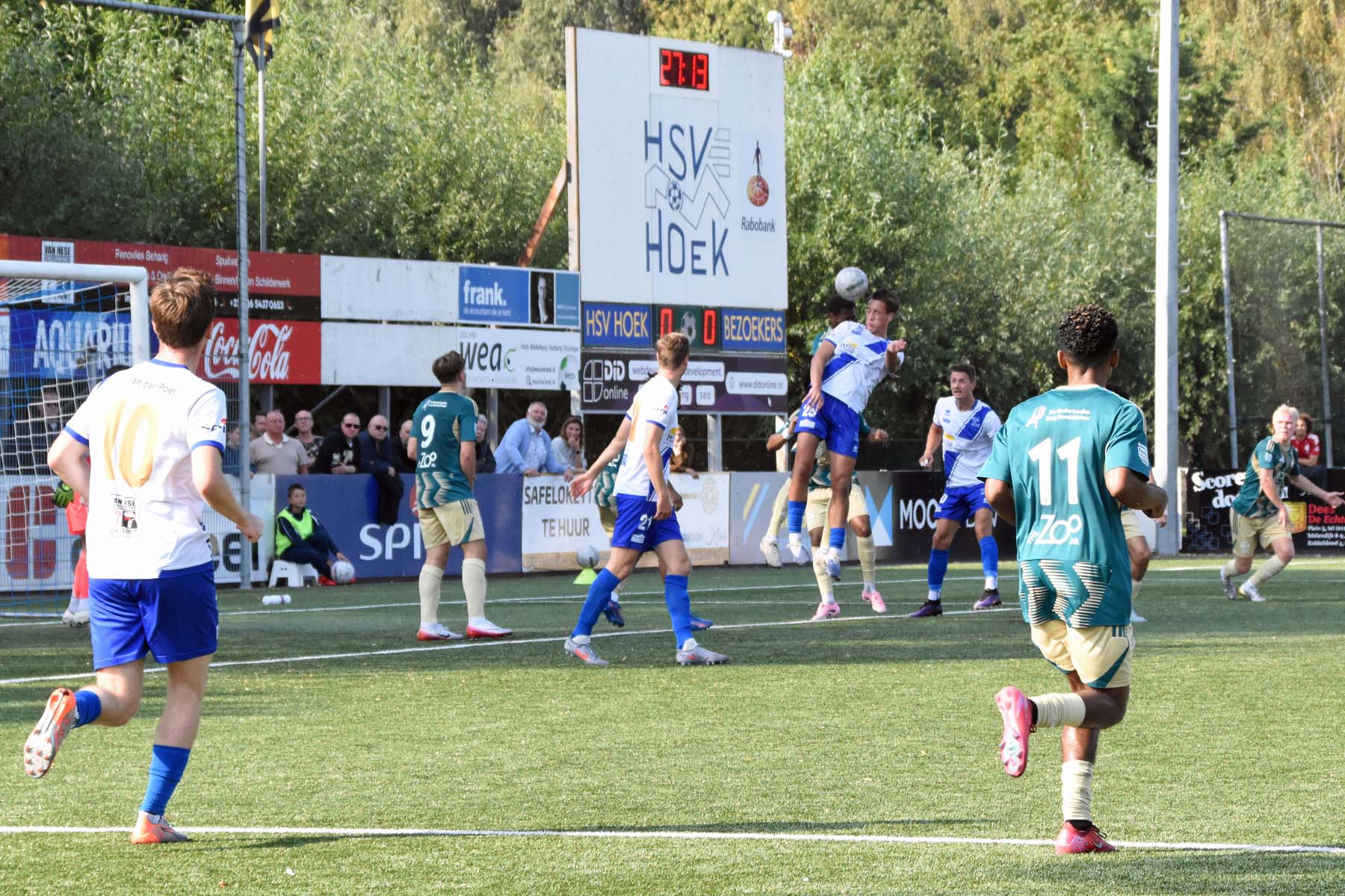 Corner voor HSV Hoek valt bij de tweede paal. Daar staat Sylvio Hage..
