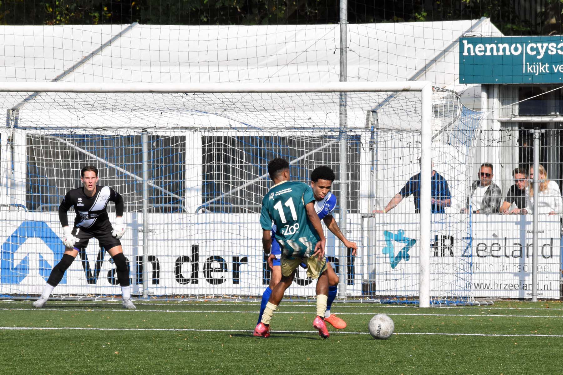 Rousseau de Poorter onderbreekt de aanval van Excelsior Maassluis.