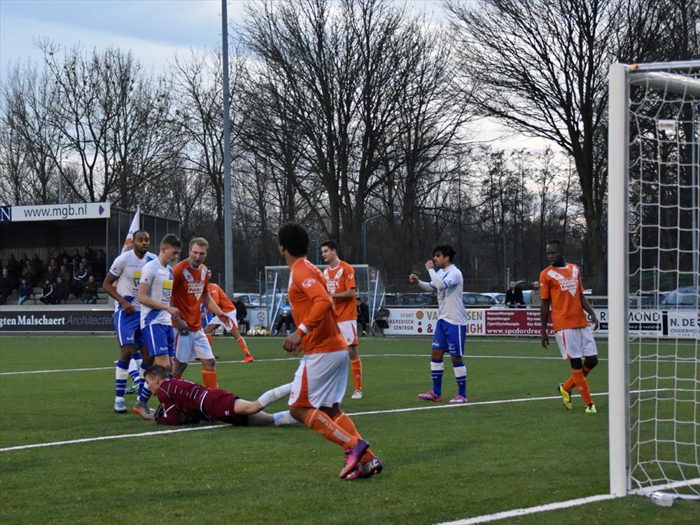 Hoek ging opzoek naar de gelijkmaker maar Oranje Wit veranderde zijn tactiek. Met zijn allen verdedigen en waar kan counteren. Uit een counter kreeg Oranje Wit een penalty. Een speler van Oranje Wit gaf voor maar de bal werd onderweg door een hand van een speler van Hoek geraakt. Dieterich zette zich achter de bal maar Jordi de Jonghe stopte de strafschop. In de rebound wist Oranje Wit de bal nog niet in het doel te krijgen, Jordi de Jonghe gooide zich er nogmaals voor waar hij nog even een schop in het gezicht kreeg. Gelukkig kon Jordi verder spelen en redde hij Hoek nog een paar keer. Gaf het stoppen van de penalty dan misschien hoop? In de 78 minuut kwam Hoek er goed uit na het vlug hervatten van het spel door keeper Jordi de Jonghe. De bal werd meegegeven met Nick de Groote die keek en legde de bal terug op Birgen Martens die kapte en draaide kreeg de bal bij Guillaume Clinckemaillie maar zijn bal werd geblokt, corner. De corner werd door Oranje Wit niet goed weggewerkt, de bal kwam voor de voeten van Birgen Martens die haalde uit maar weer stond daar de keeper. Oranje Wit deed er alles aan om het ritme van Hoek te verstoren, een goed fluitende scheidsrechter zette bij elke blessure behandeling en wissel zijn klok keurig netjes stil. Met een blessuretijd van ruim 7 minuten kreeg Hoek het niet voor elkaar om Oranje Wit te verslaan.