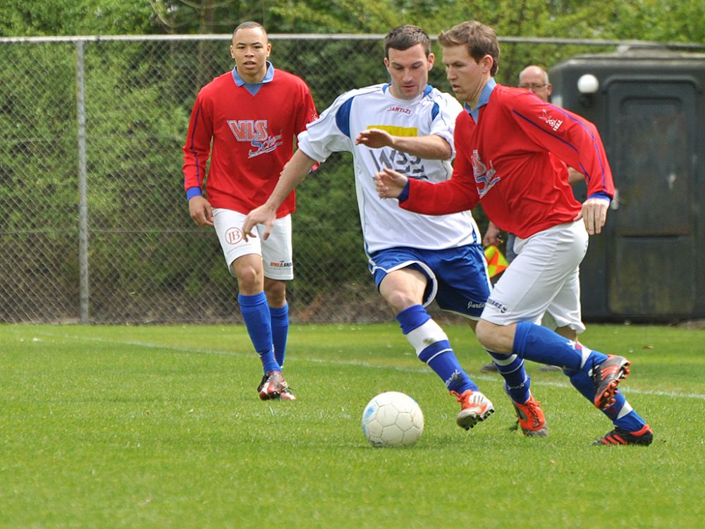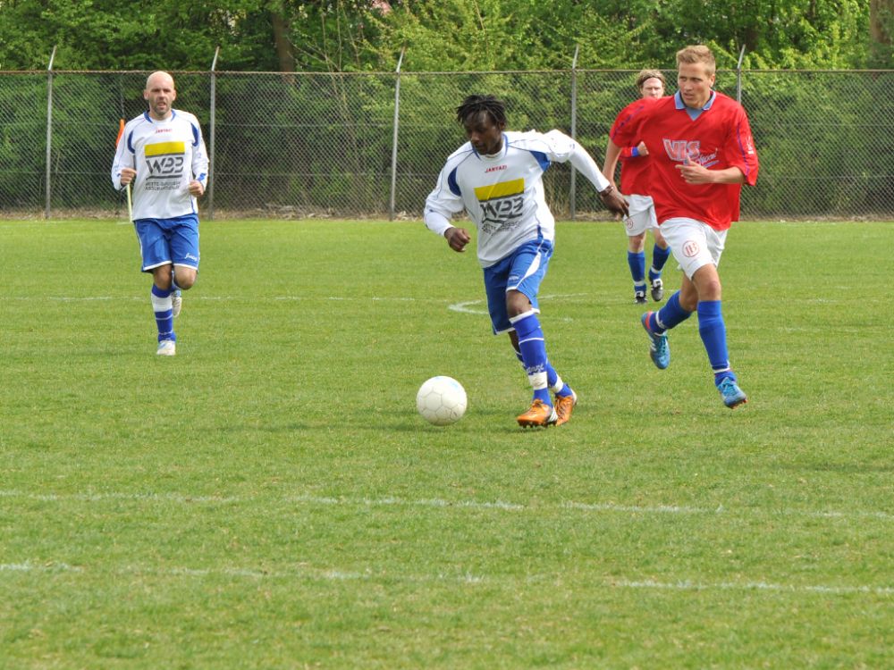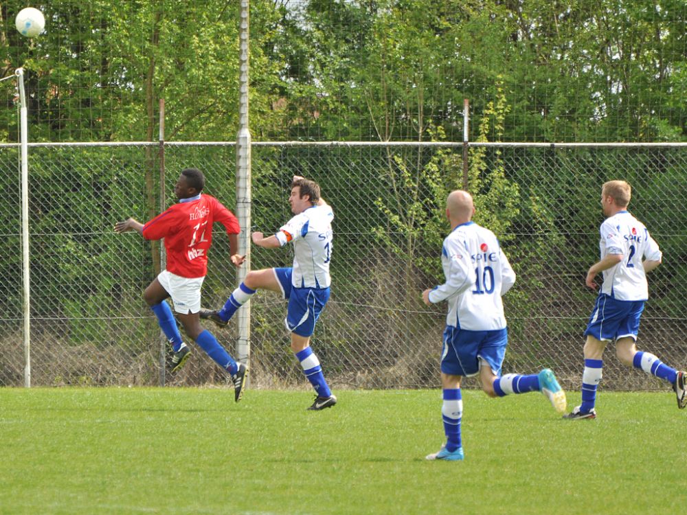 Hoek 2 heeft het bewogen voetbalseizoen 2012/2013 afgesloten met positief gevoel na alle ellende die men dit jaar heeft gekend. Afgelopen weken heeft de TC van Hoek 2 zich nog eens over het seizoen gebogen en kwam men tot de conclusie dat degradatie niet nodig was geweest. Het woord "als" dat niet telt in de sport kwam vaak voorbij, want wat als Kenny Verhoene vanaf het begin van het seizoen trainer was geweest!! Het moge duidelijk zijn dat Hoek 2 het grootste slachtoffer is geworden van de olifant door de porseleinkast visie van Erik Hellemons. Maar daar kopen we niets meer voor, al mag ook niet alles op het conto van Hellemons worden afgescheept want duidelijk was dat Hoek 2 teveel kwaliteit had ingeleverd ten opzichte van andere jaren. In het lopende seizoen hebben een zestal spelers de boel in de steek gelaten en dat zegt veel over hun mentaliteit maar hebben Hoek 2 de kop gekost. Het was elke week puzzelen om tot een elftal te komen en te zorgen dat ook andere ploegen genoeg spelers hadden om te kunnen spelen. Het is dankzij medewerking van Hoek 1,3,4 en de A1 en de B1 gelukt en dat mag best een prestatie op zich genoemd worden. Zo moest er zaterdagmiddag in allerijl ook weer een beroep worden gedaan op spelers van Hoek 4 die net een wedstrijd in de benen hadden. Het deerde Hoek 2 allemaal niet want het pakte in de laatste wedstrijd een dik verdiende overwinning al had de uitslag er ook heel anders uit kunnen zien dan 3-0. In de 2 minuut van de wedstrijd waren de bezoekers al dicht bij een treffer maar de lat stond succes in de weg. Enkele minuten later was er een goede kans voor Andreas Dalempakis, maar zijn schot spatte op de vuisten van de doelman uiteen. Vlak na deze kans een goede voorzet van Urvin van Hekelen op Arjen Schieman, ook hier redde de doelman op de inzet van Schieman. De bezoekers die ook de nodige personele problemen kenden zochten behoedzaam naar een gaatje in de Hoek 2 defensie. Men leek die te hebben gevonden maar de treffer werd al dan niet terecht afgekeurd wegens buitenspel. Met nog een minuut of tien op de klok een goede ingreep van Maikel Krans die vervolgens de bal kon voorgegeven. Een speler van Vvgz 2 dacht terug te kunnen koppen op zijn doelman maar zag daarbij de goed opgestelde Regilio Pinas over het hoofd. Met een mooie beweging klopte Pinas de doelman en zette zo zijn rentree na blessureleed luister bij. Nog voor de thee leek de gelijkmaker te komen na een vlot lopende aanval werd de Hoek 2 defensie uiteen gespeeld. Een speler van Vvgz 2 werd voor een leeg doel vrij gespeeld, echter tot ontzetting van de Zwijndrechters schoot hij over. In de eerste minuten na rust was het weer de beurt aan Hoek 2 om kansen te missen, al moet hierbij worden aangetekend dat de doelman van de bezoekers tot tweemaal toe uitstekend de ballen uit zijn doel ranselde. Naar mate de wedstrijd vorderde zakte de motivatie bij de bezoekers, ze vonden het wel best en daar profiteerde Hoek 2 optimaal van. Zo zette Marco Doens de 2-0 op het bord na een splijtende pass van Urvin van Hekelen, en scoorde Marco Hamelink de 3-0 nadat hij hard had gewerkt om een terugspeelbal te onderscheppen. Hoek 2 sloot het seizoen waardig af met een 3-0 zege en kijkt weer al reikhalzend uit naar het nieuwe seizoen. Maar eerst zullen alle spelers van kleine blessures moeten genezen want het was echt op het tandvlees wat er nog uit de lijven werd geperst vandaag.