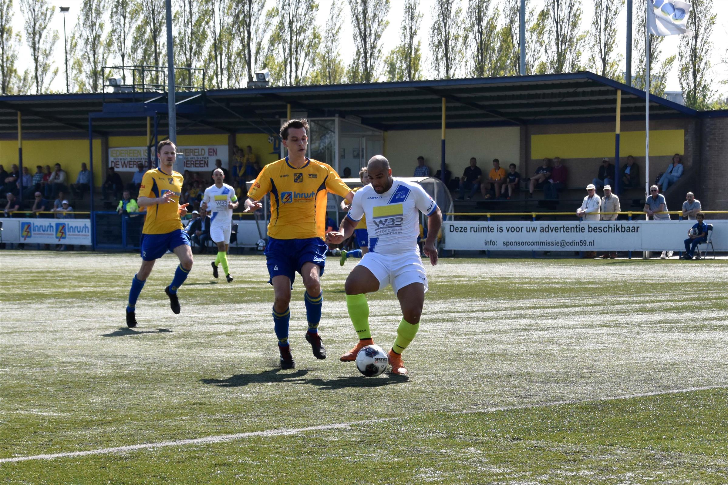 de verdediger van Odin probeert de bal te ontfrutselen...
