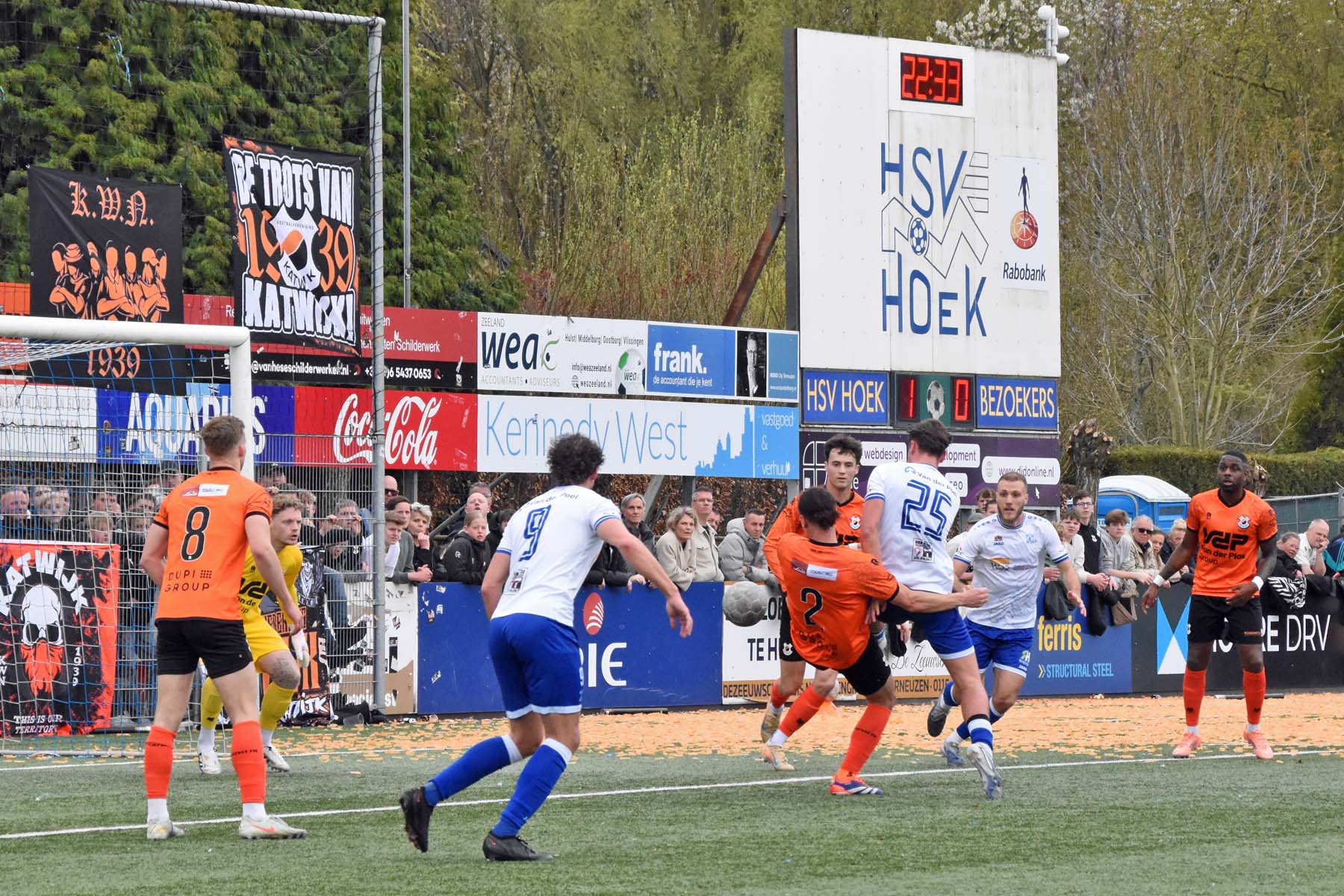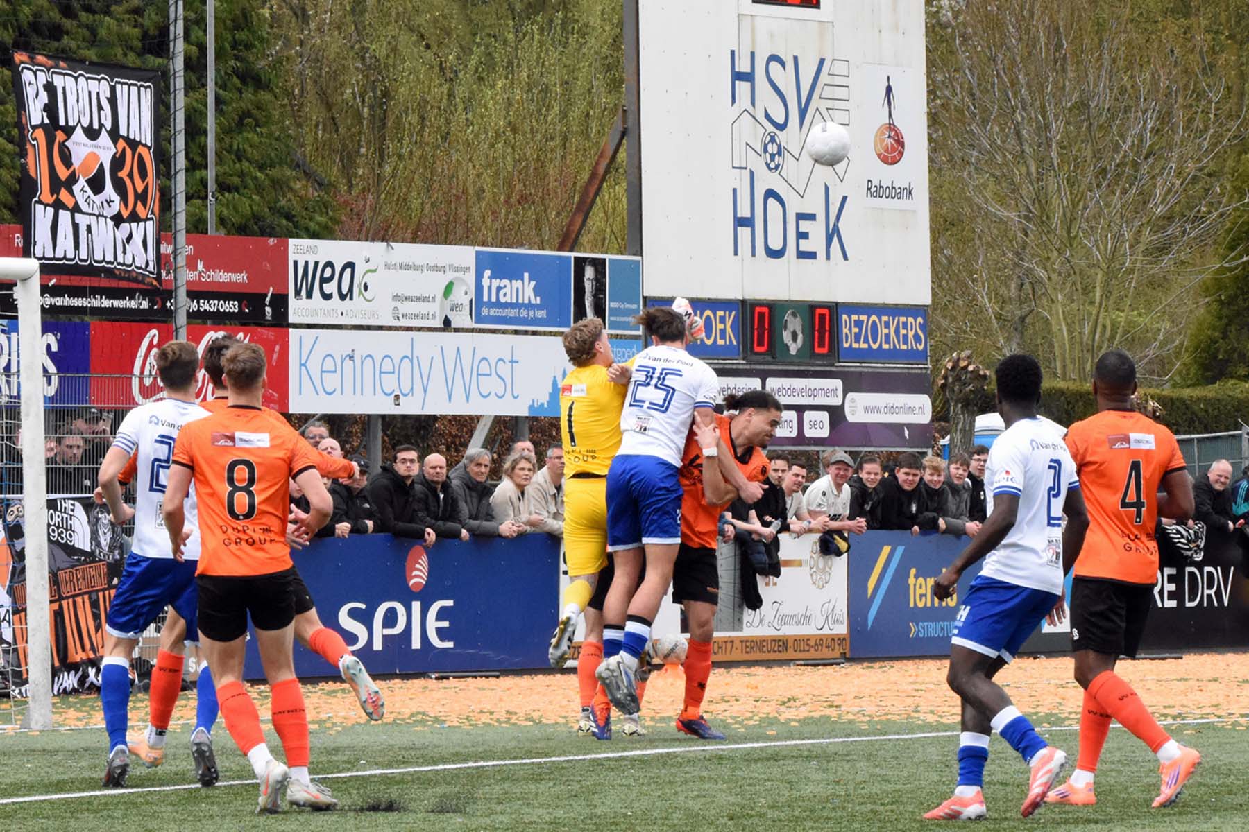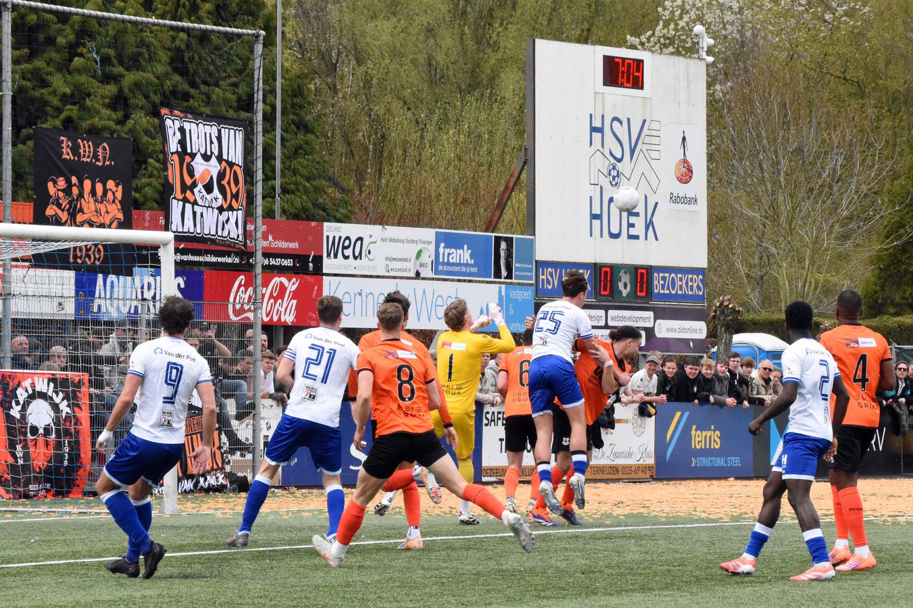 Corner voor HSV Hoek. Wout den Engelsman mee naar voren..