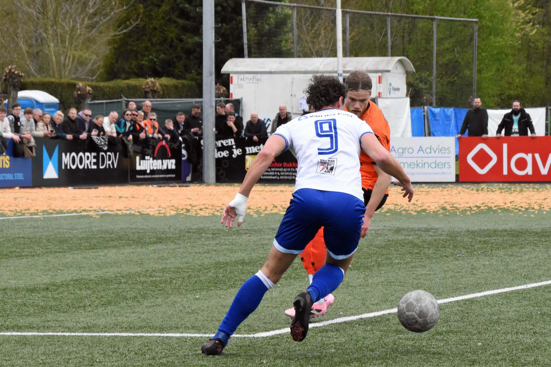 Sylvio Hage speelt met zijn directe tegenstander, zoekt de ruimte...