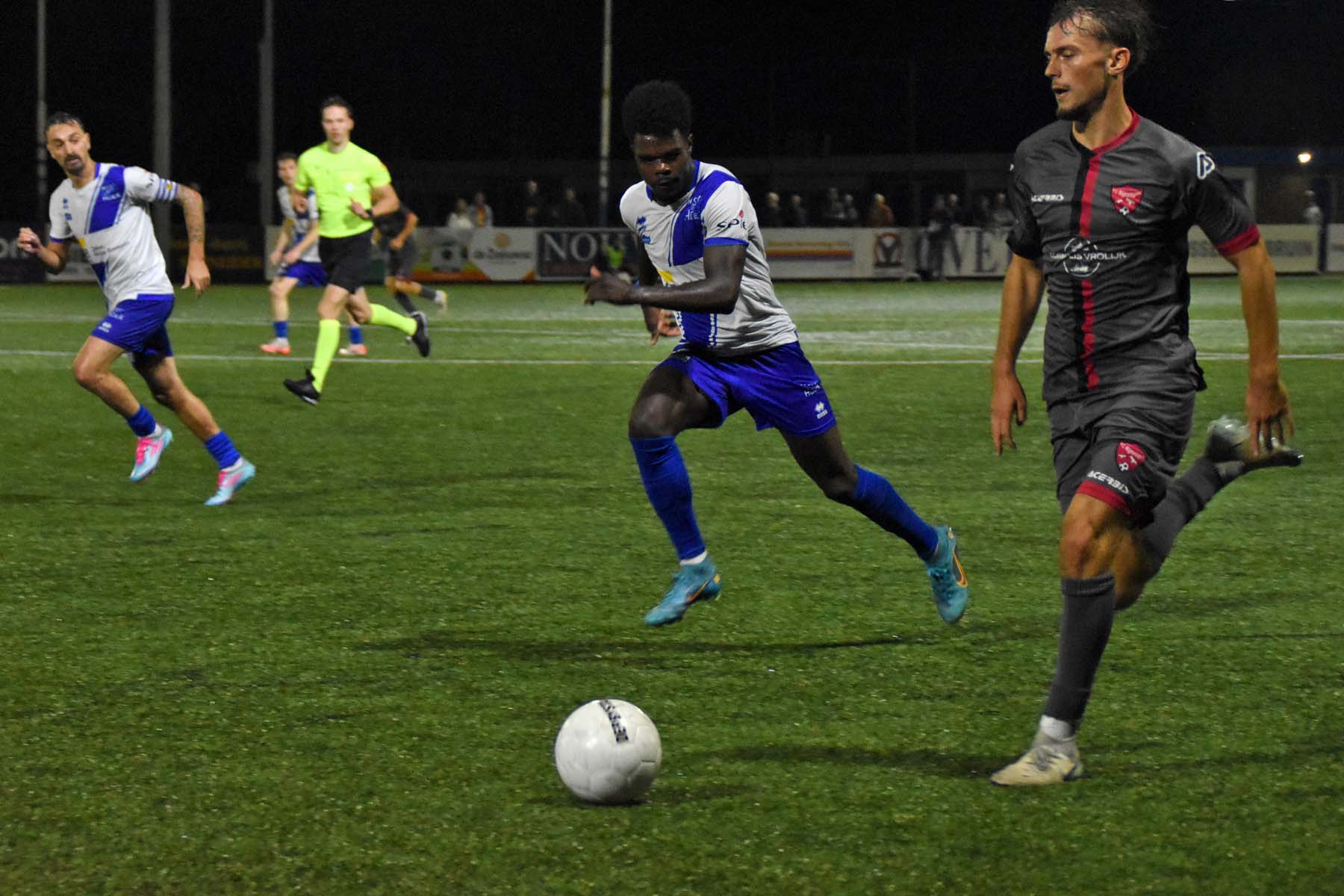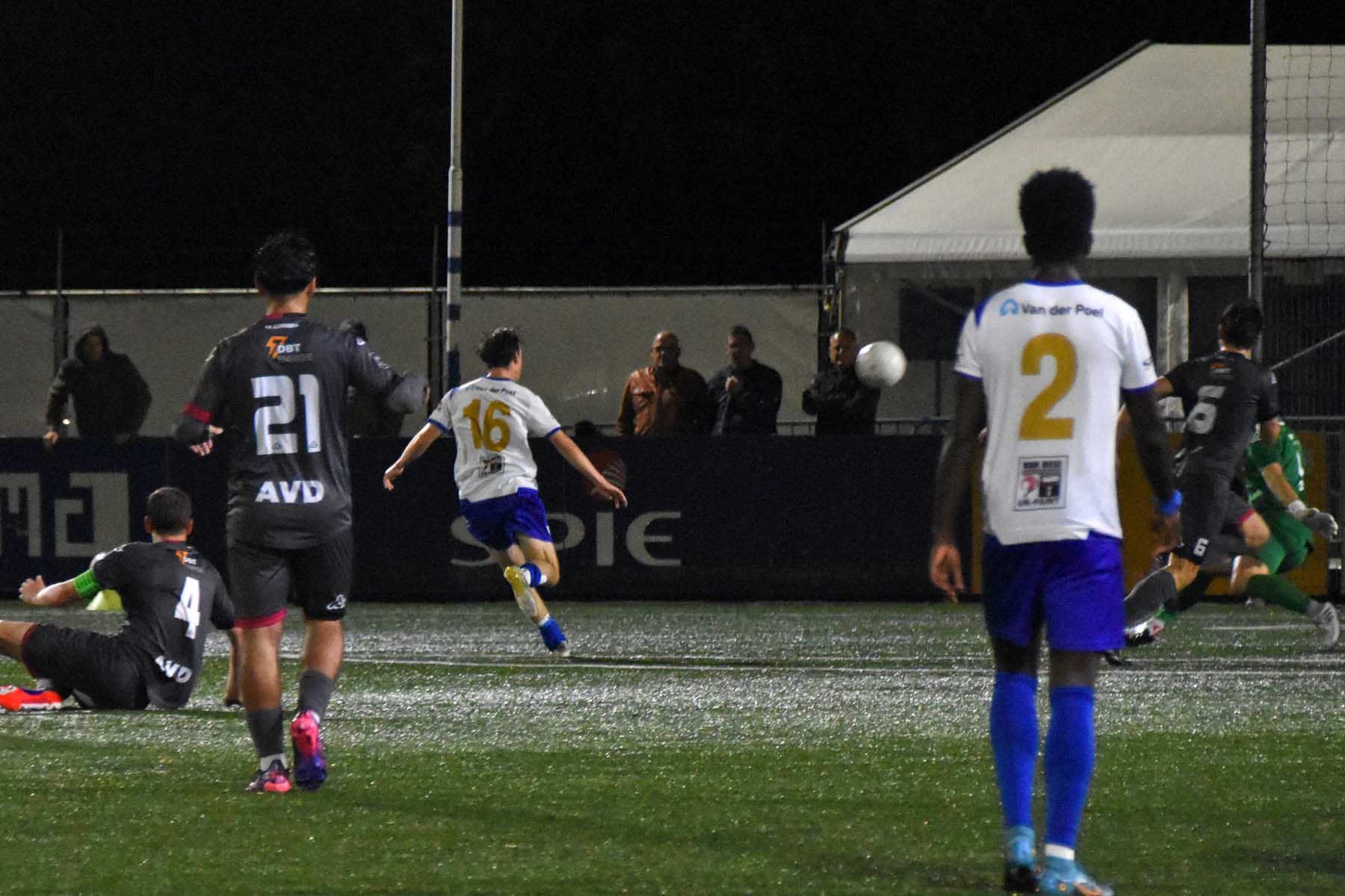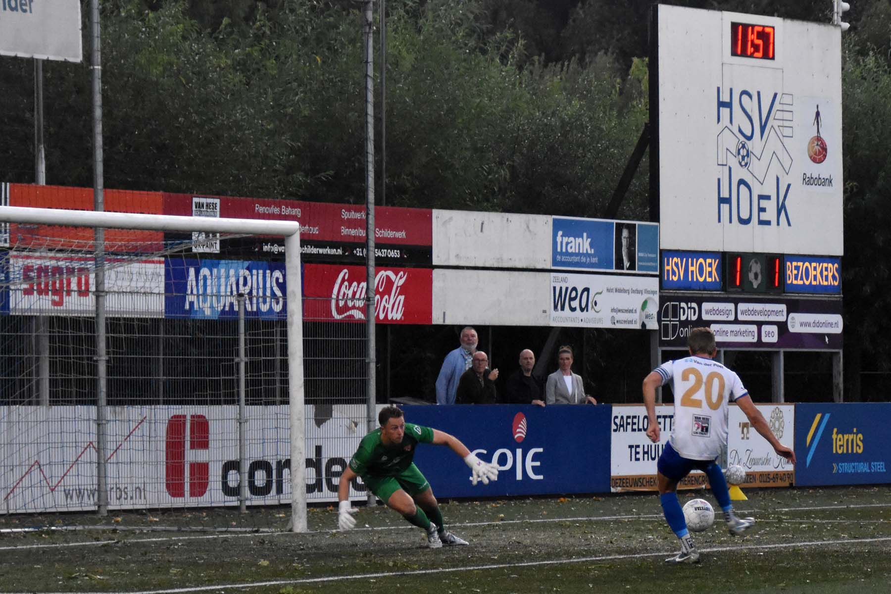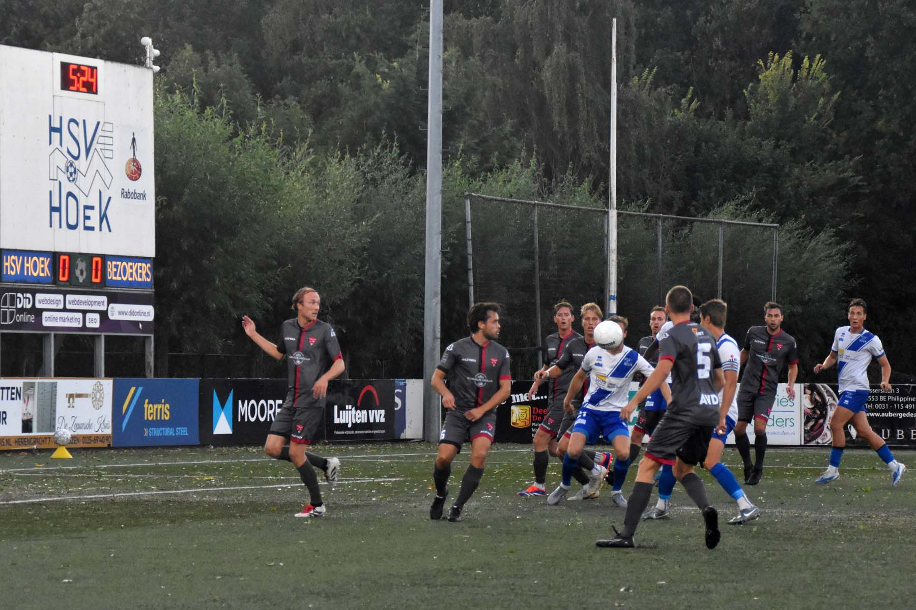 Op een zwoele avond in Zeeland liet Hoek vanaf het eerste fluitsignaal zien wie de baas was. De ploeg van Gérard de Nooijer combineerde vlot en creëerde al snel kansen tegen het op papier lager ingeschaalde FC Rijnvogels. De openingsgoal was direct een juweeltje: Gertjan Martens werkte een vrije trap van Noah Aelterman met de hak achter de doelman. Hoewel Rijnvogels snel gelijkmaakte via Sven Koppenol, nam Hoek daarna het heft volledig in handen. Steve Schalkwijk tikte alert binnen na een fout van de doelman, waarna Aelterman met een droge knal de 3-1 binnenschoot. Kort voor rust zorgde verdediger Rousseau De Poorter met een rake kopbal uit een corner zelfs voor 4-1. Hoek speelde de tegenstander bij vlagen van het veld en leek zich al op te maken voor de volgende ronde.