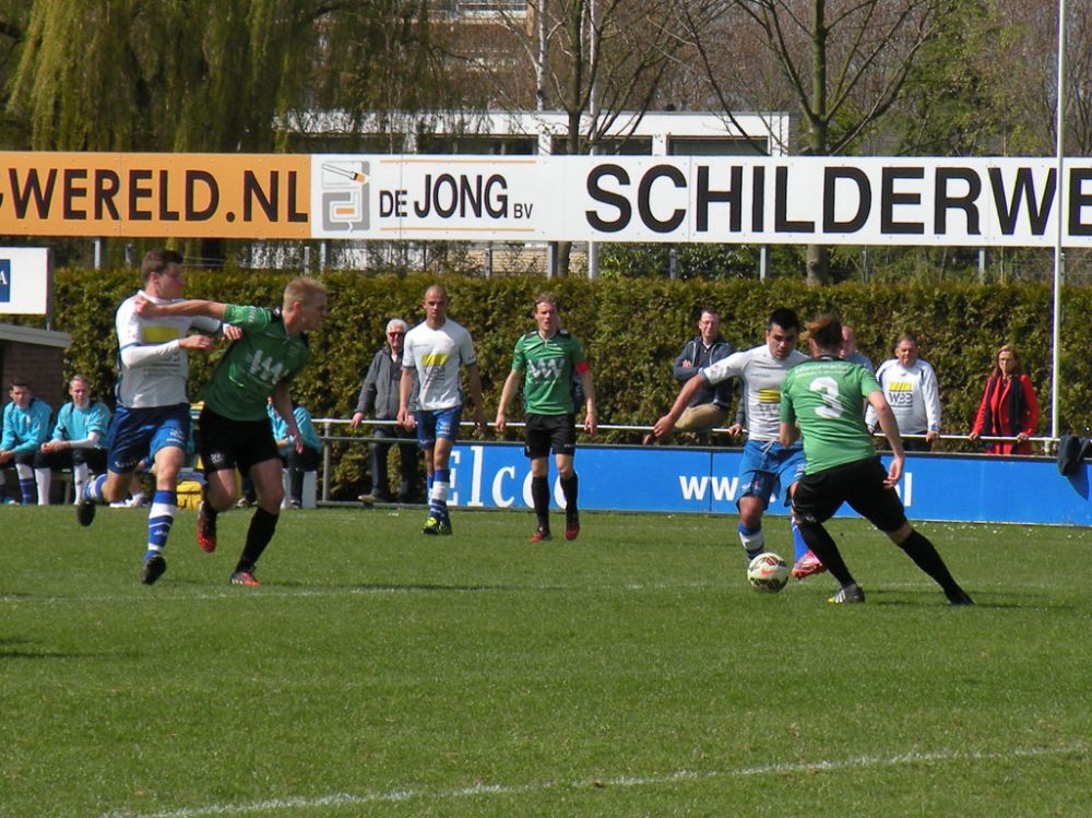 Ook de 2-1 werd vanuit buitenspel positie gemaakt, maar ook nu bleef de vlag van de grensrechter naar beneden. Op de 3-1, drie minuten voor rust, was niets aan te merken. Kay Blokland kopte de bal vanuit een corner mooi in het dak van het doel.