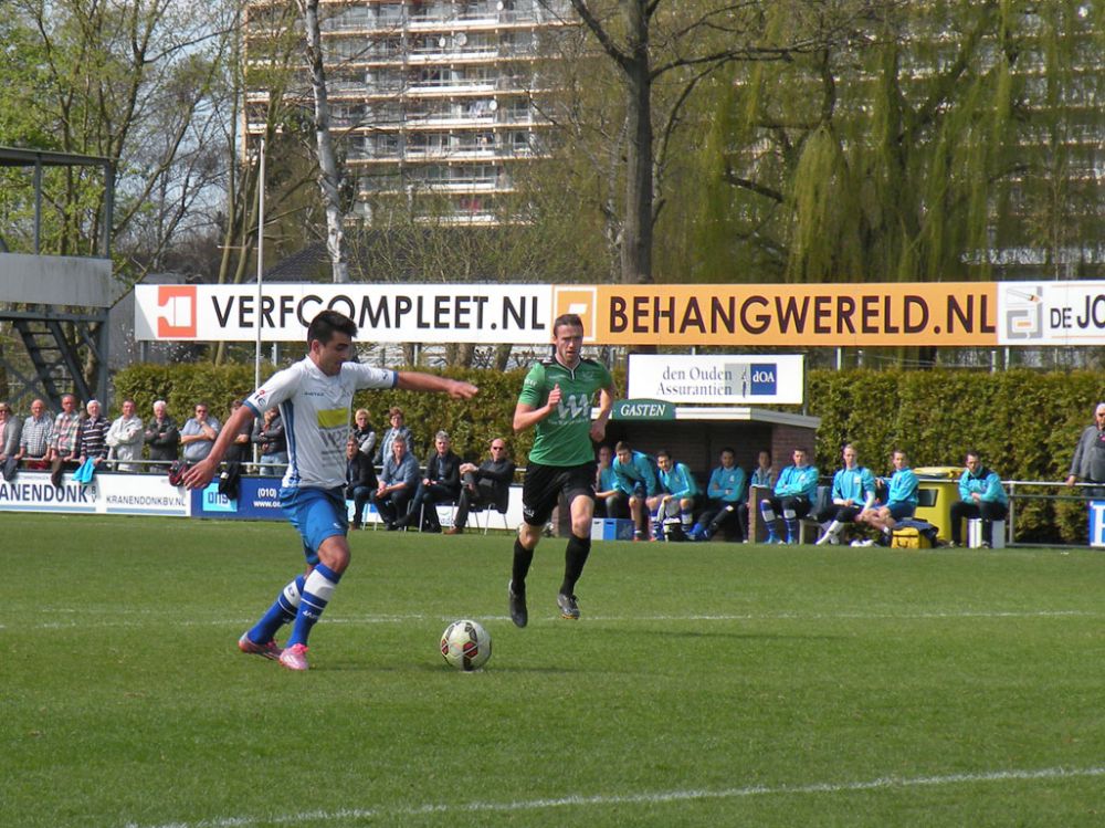Sterke verdediger van Capelle, zal Hoek nog veel mee te stellen hebben deze middag.