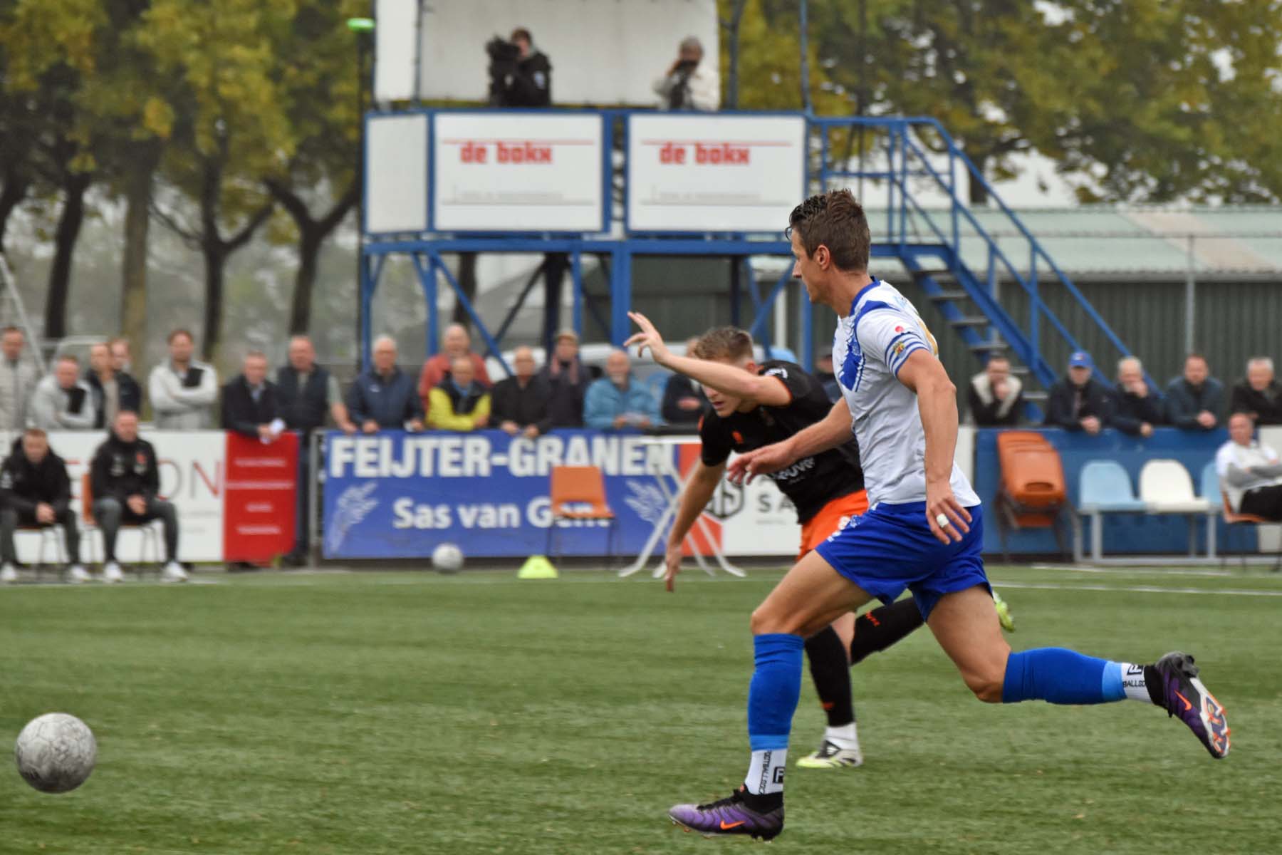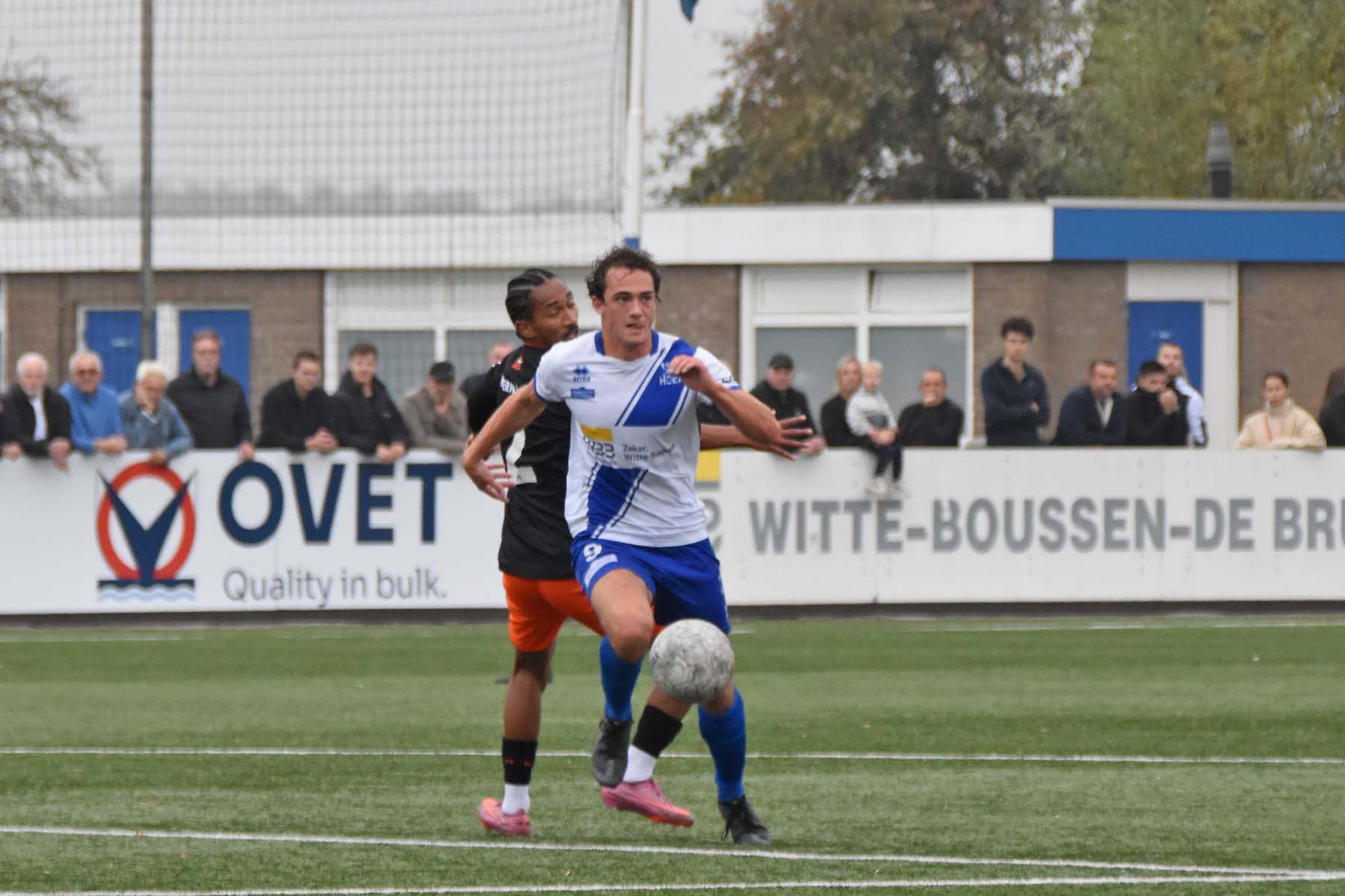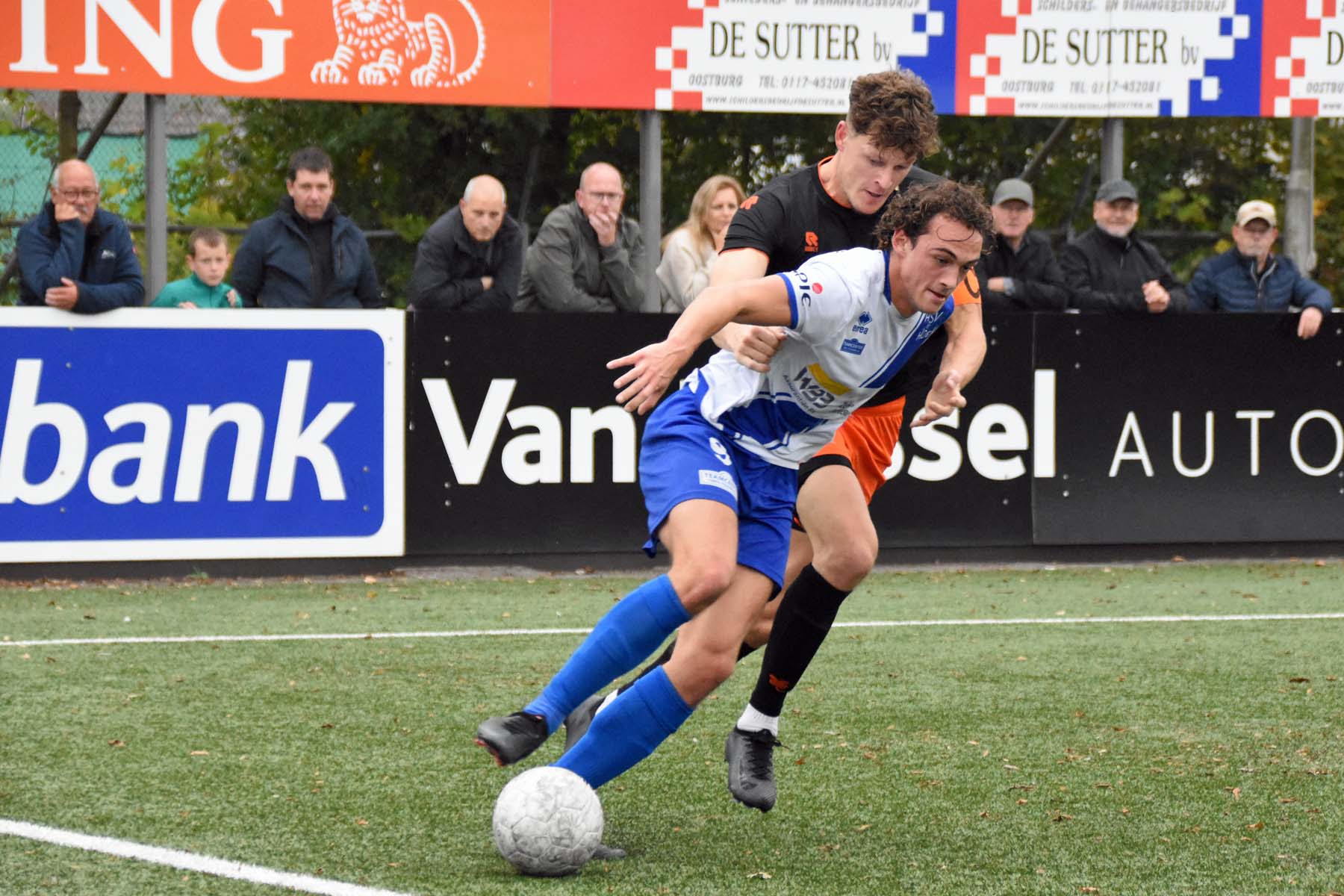 Voor elke bal wordt gestreden. Robbie van Hauter schroomt de duels niet..
