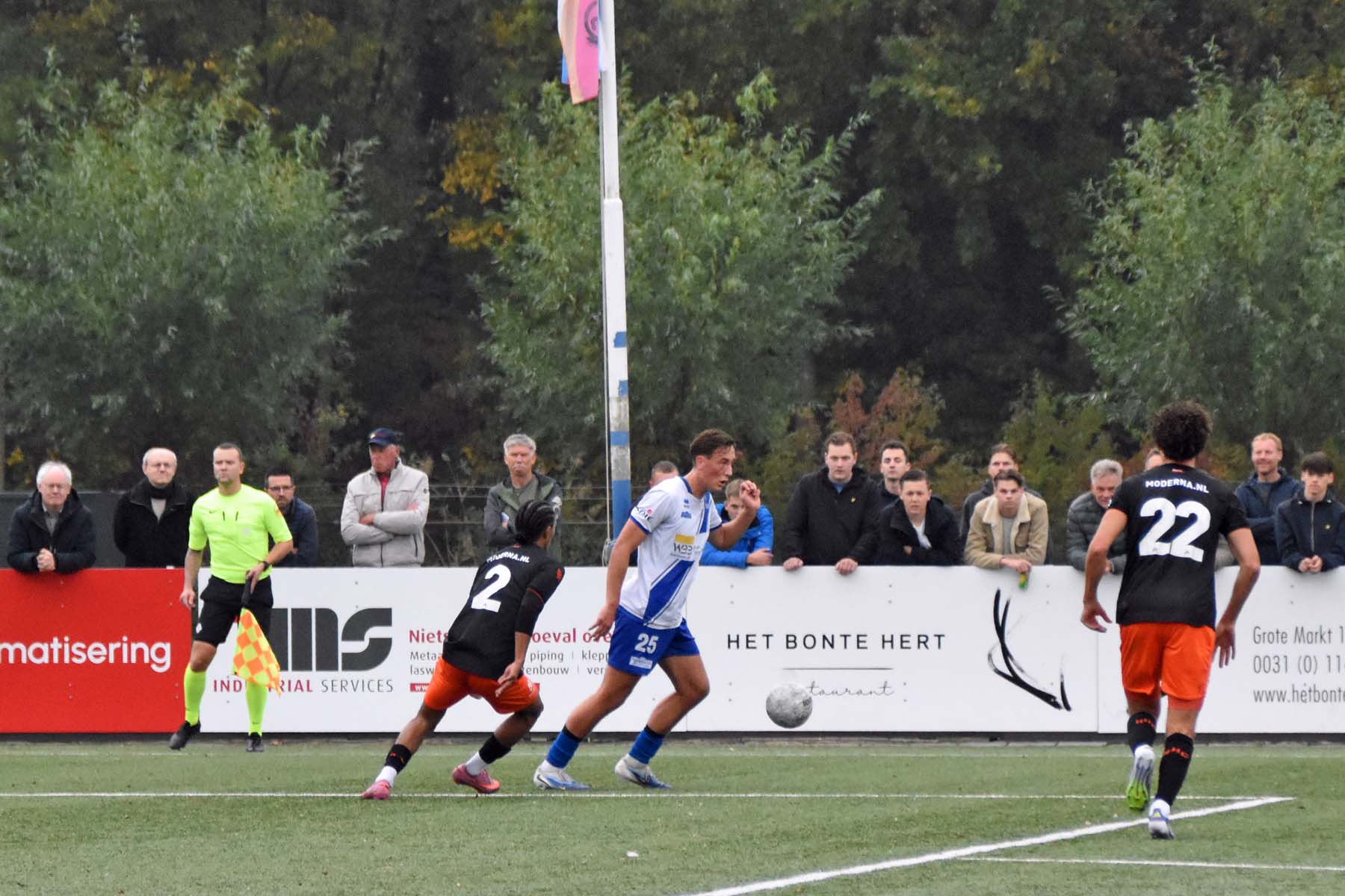 HSV Hoek kiest direct de aanval. Yanillio de Nooijer geeft de bal voor..