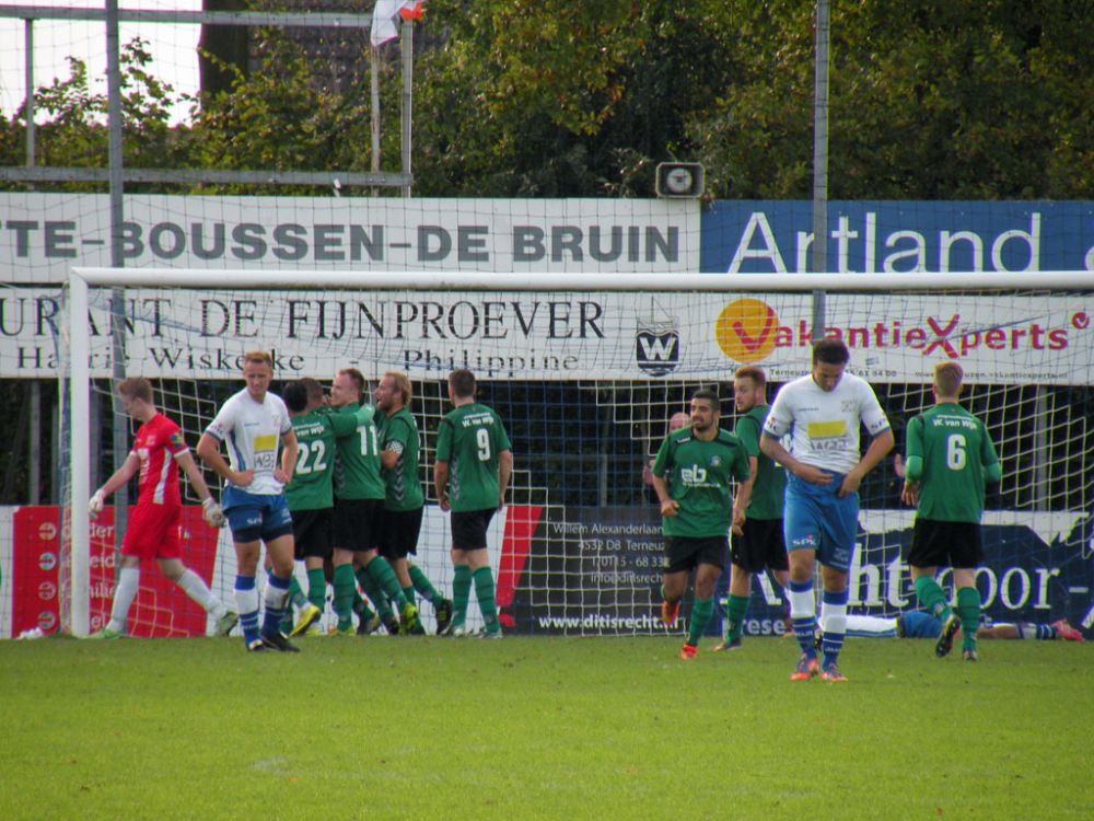 Trainer Kenny Verhoene wisselde in de laatste twee minuten van de reguliere speeltijd twee keer in de hoop wat tijd te rekken. De extra speeltijd van drie minuten was voor Scheveningen net genoeg om de gelijkmaker te maken. Hoek speelde de bal op eigen helft buiten waardoor Scheveningen mocht ingooien. Ook nu wierp Enzo Huntink de bal in de zestien waar Samir El Moussaoui afrondde, 2-2.