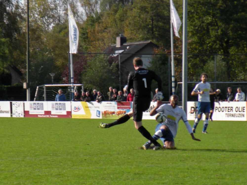 Persoons blijft de verdediger van Scheveningen onder druk zetten.