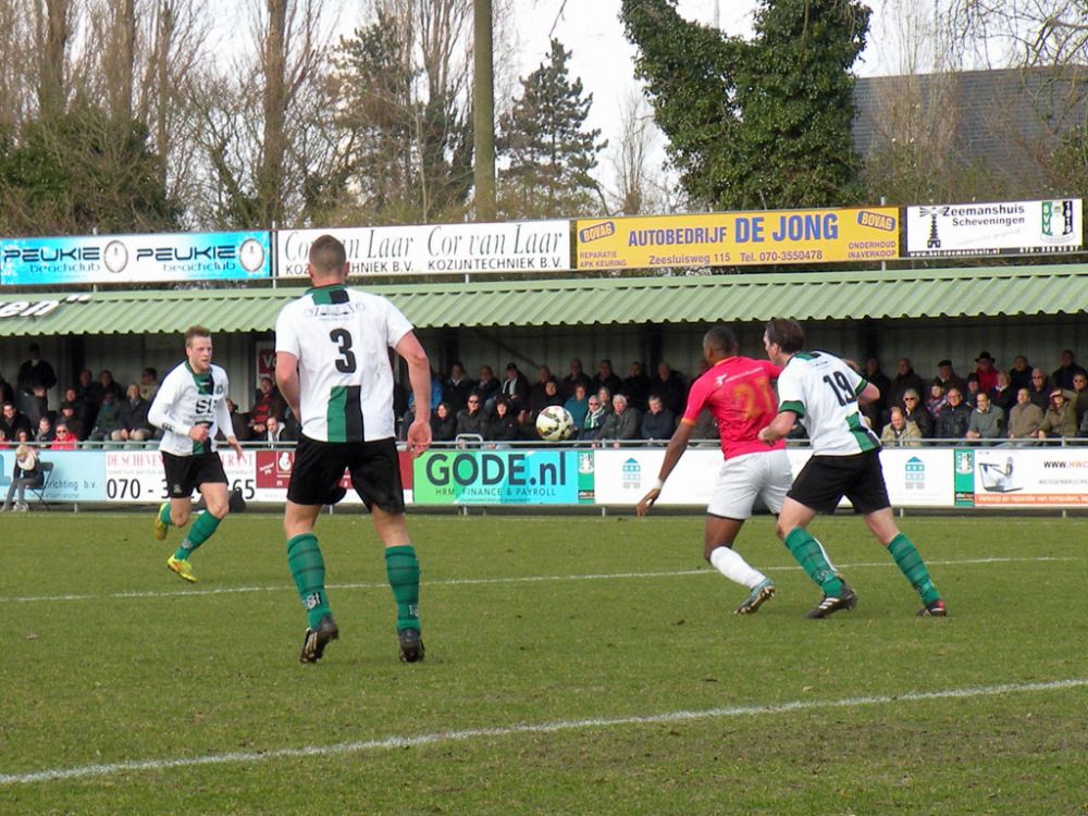 Een misverstand tussen keeper Jordi de Jonghe en verdediger Giovanni Siereveld luidde de 1-0 van Scheveningen in.