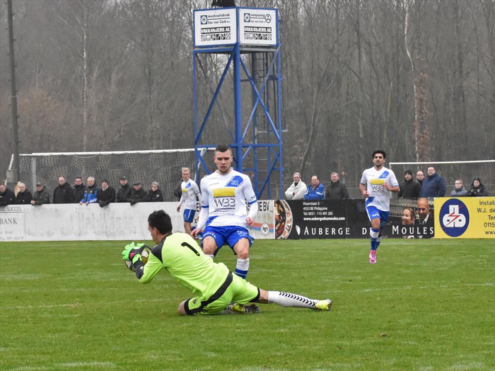 Drie minuten voor rust behoedde doelman de Jonghe Hoek van een grotere achterstand door het schot van Ahmed el Azzouti over te tikken.
