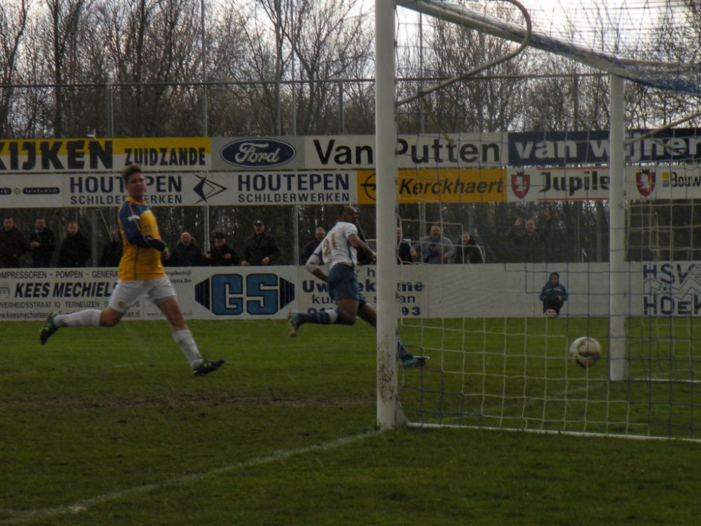 Ondanks dat Hoek onder druk speelde kwam het vijf minuten voor rust toch tot scoren. Gert Jan van Leiden bediende Kyle Doesburg met een pass op maat. Doesburg zette voor waarna Sam de Munter de bal snoeihard door het midden binnen schoot, doelman Mark de Vries kansloos latend.