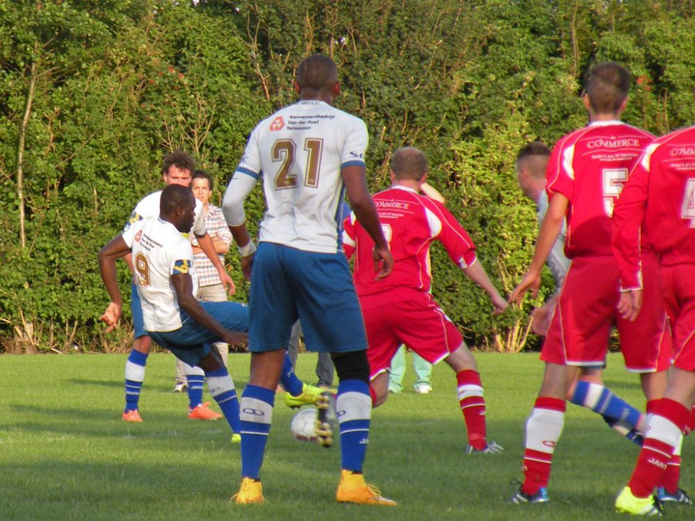 de nieuwe spits Rahim Abdul, de schiet de 0-1 binnen. Zijn eerste doelpunt in het shirt van HSV HOEK.