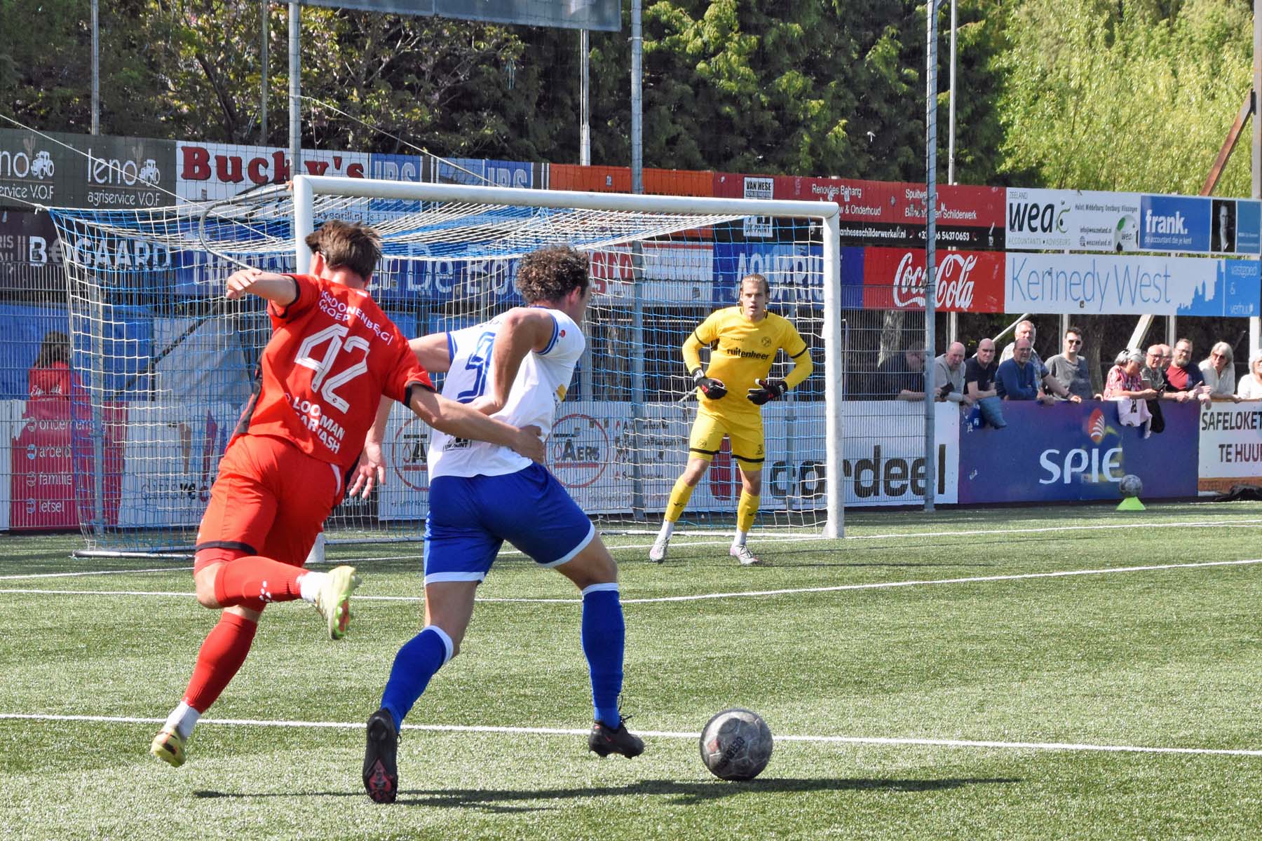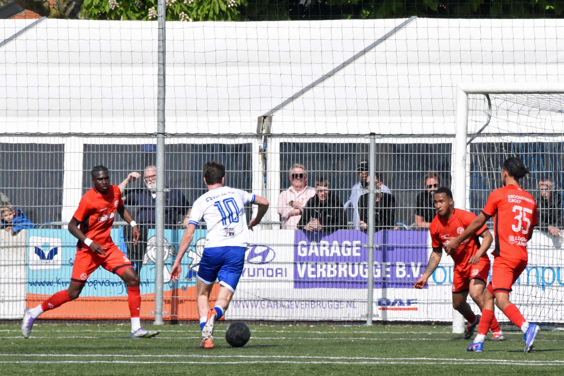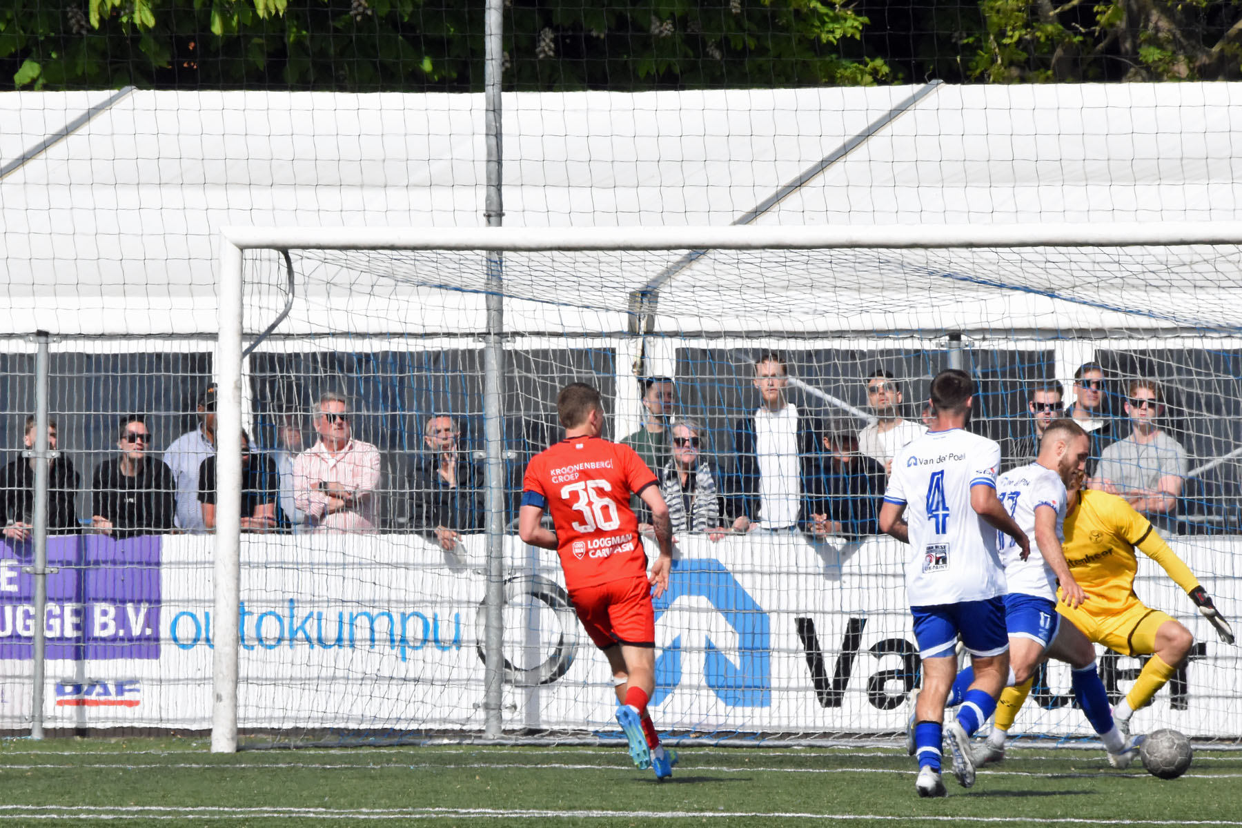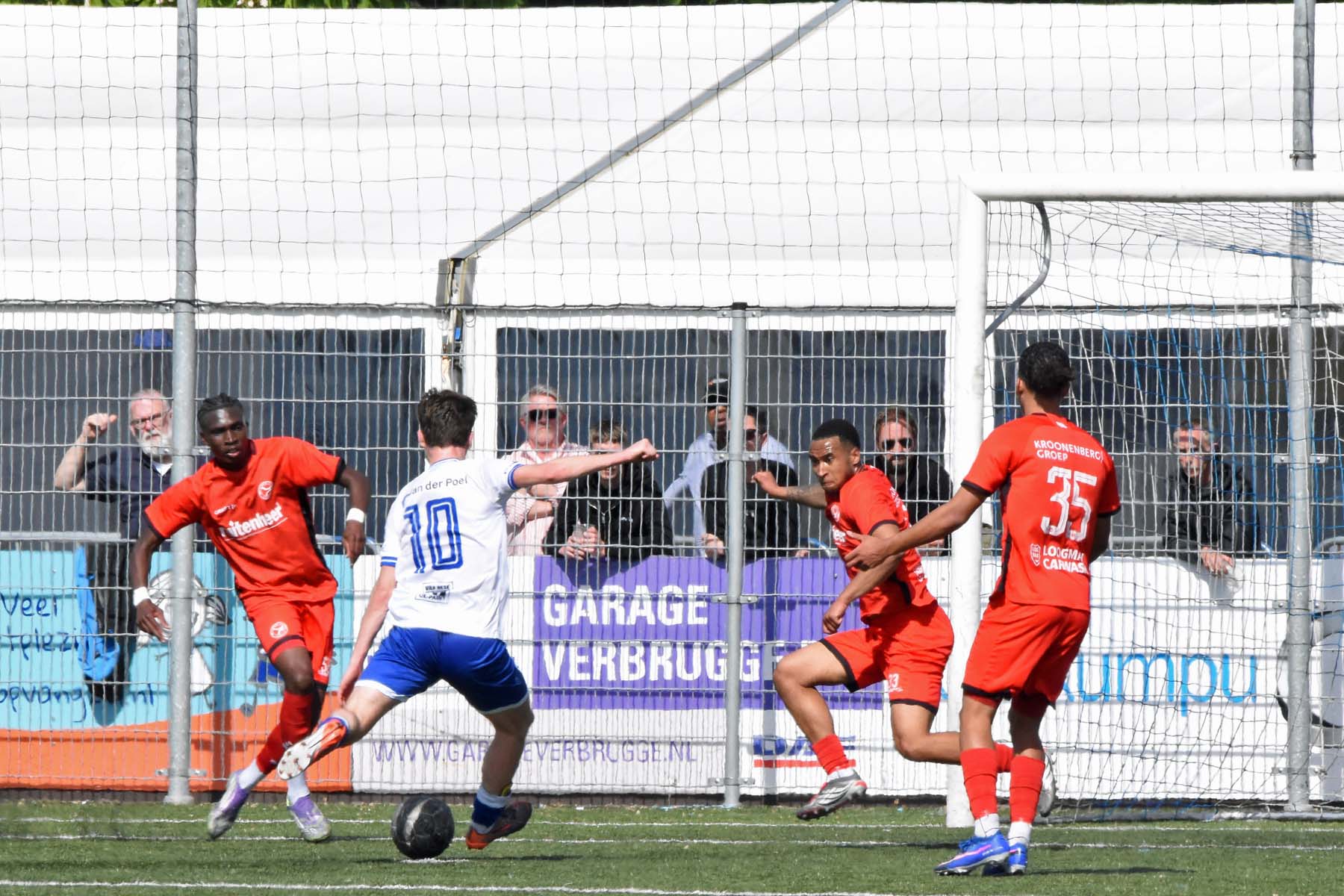 veel supporters van HSV Hoek vragen zich af "is die bal over de lijn?"