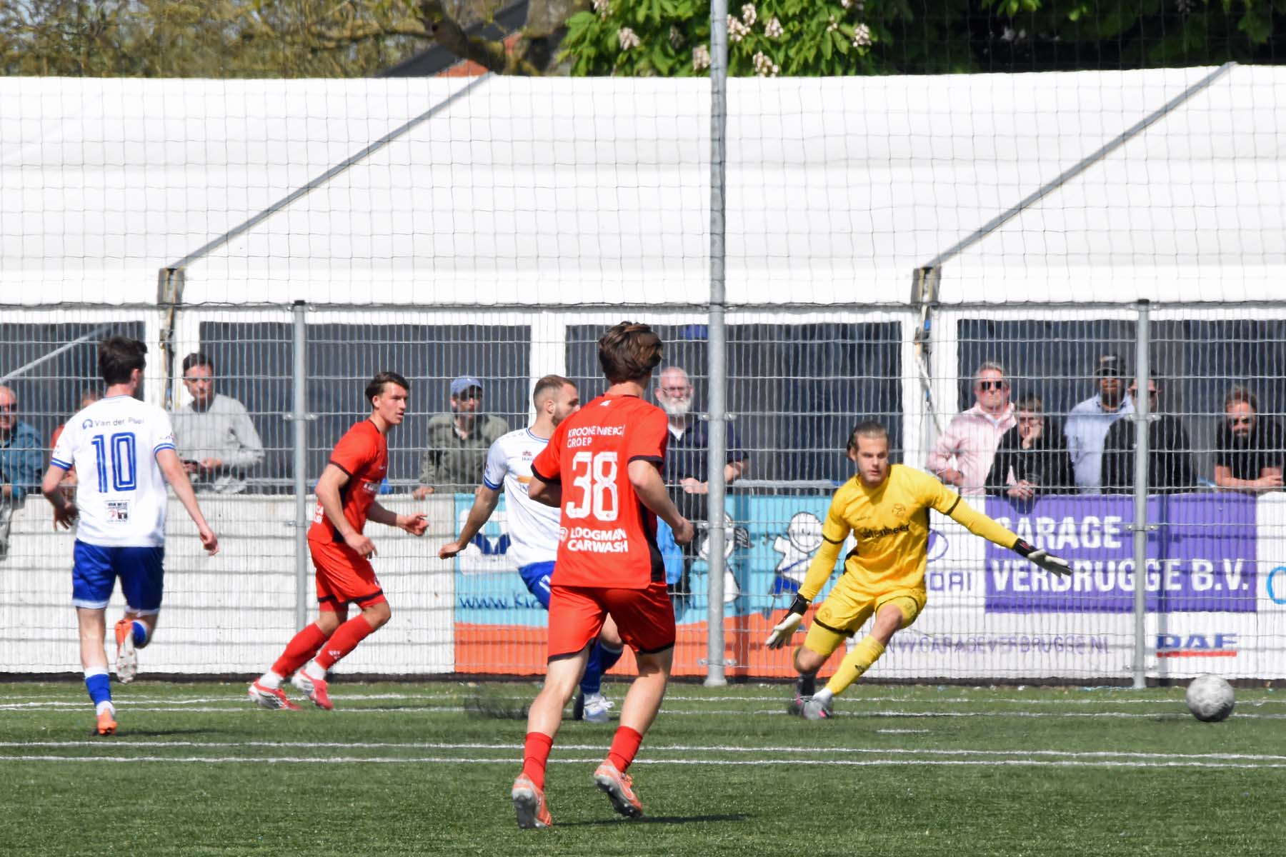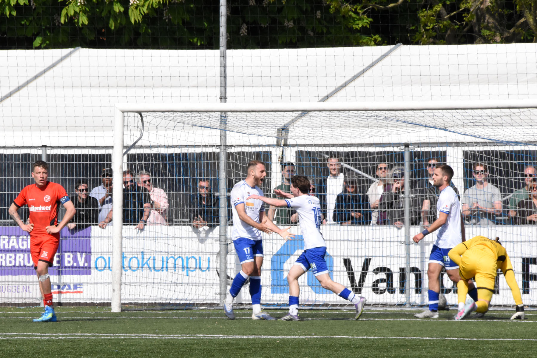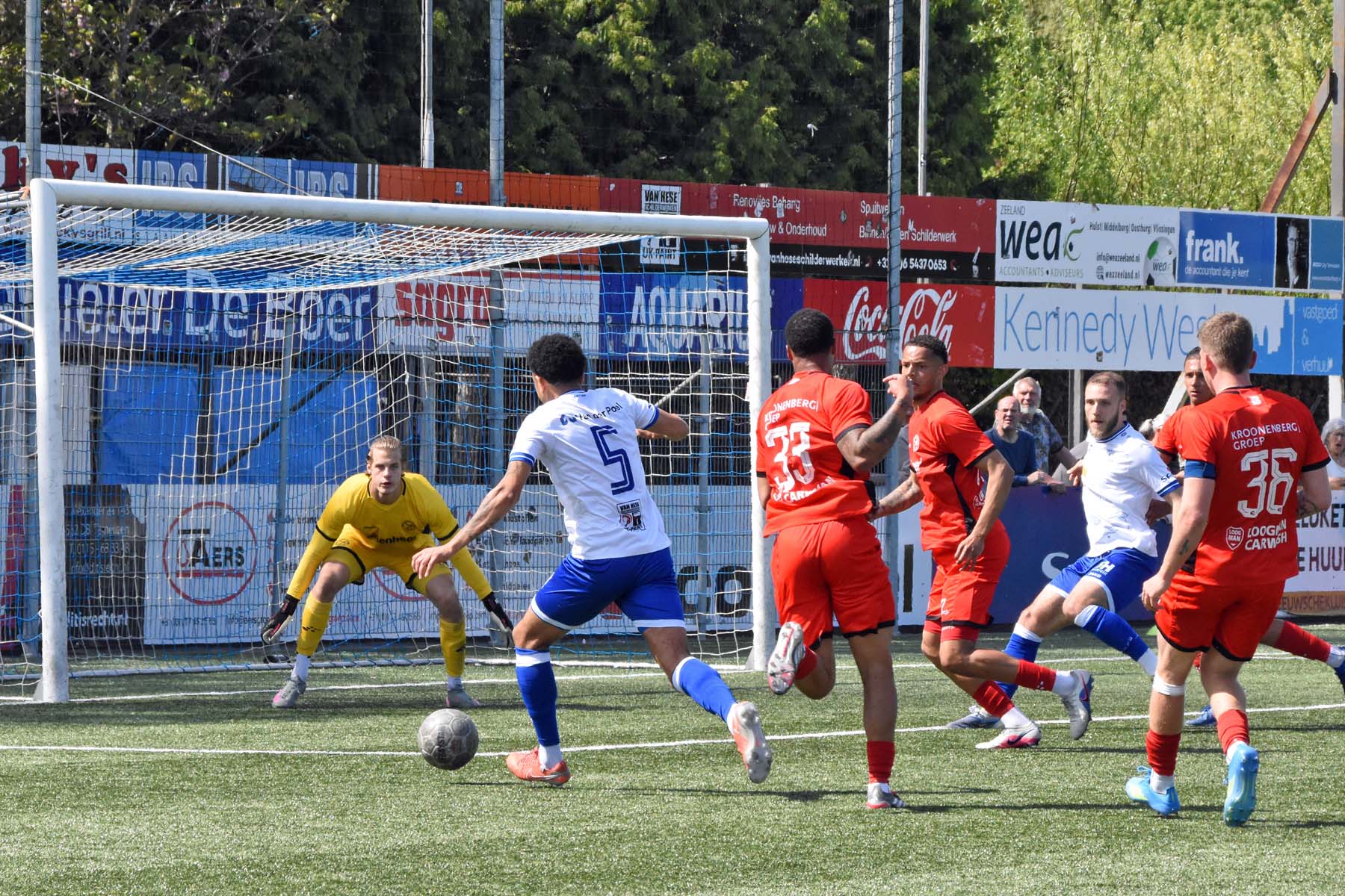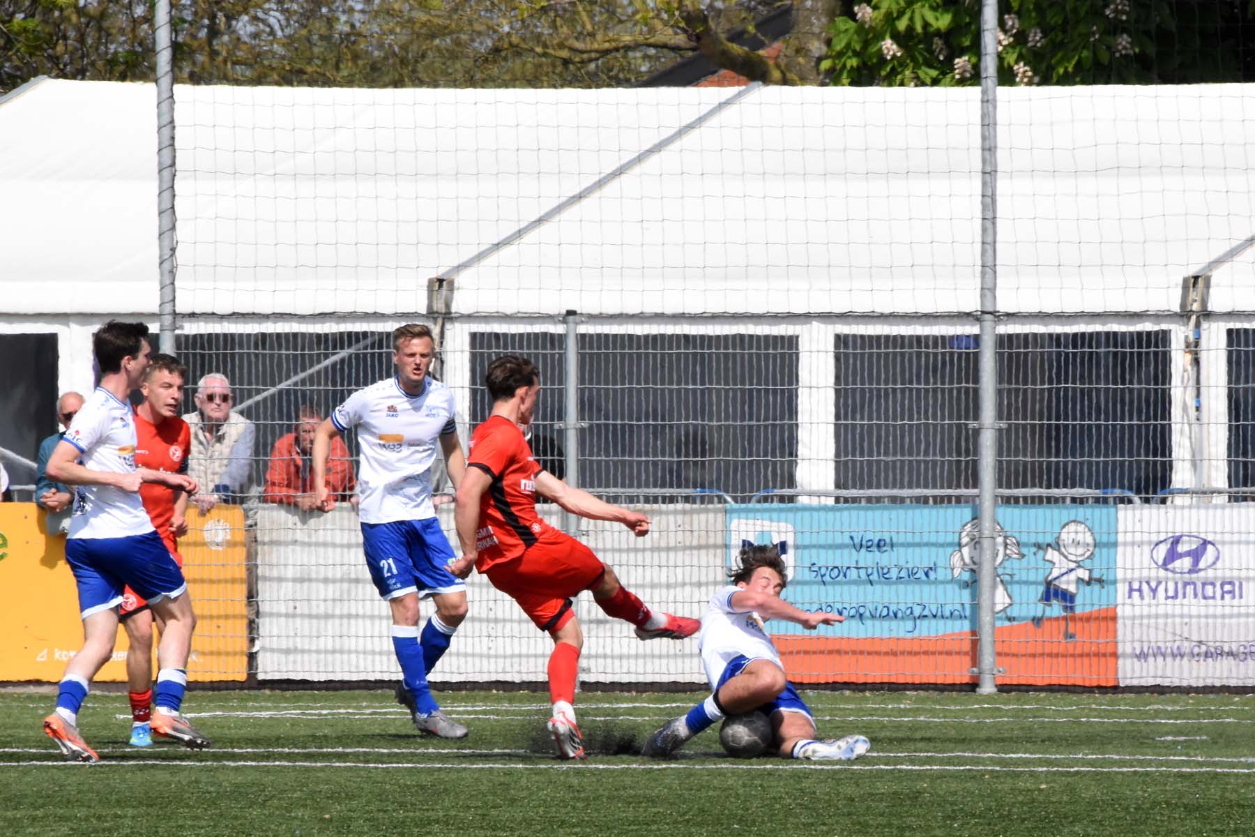 veel supporters van HSV Hoek vragen zich af "is die bal over de lijn?"
