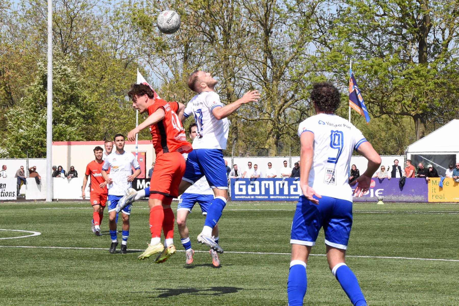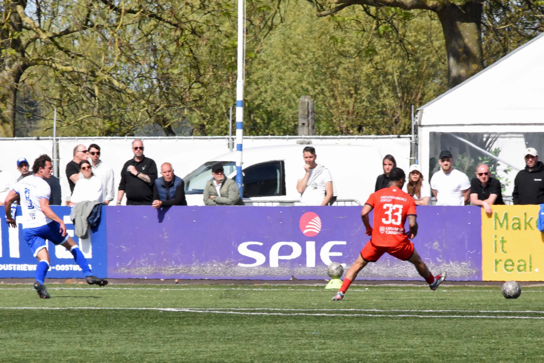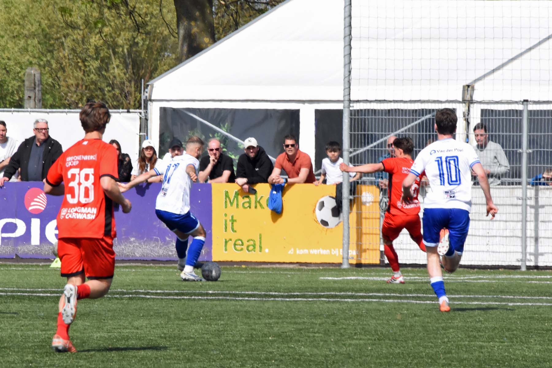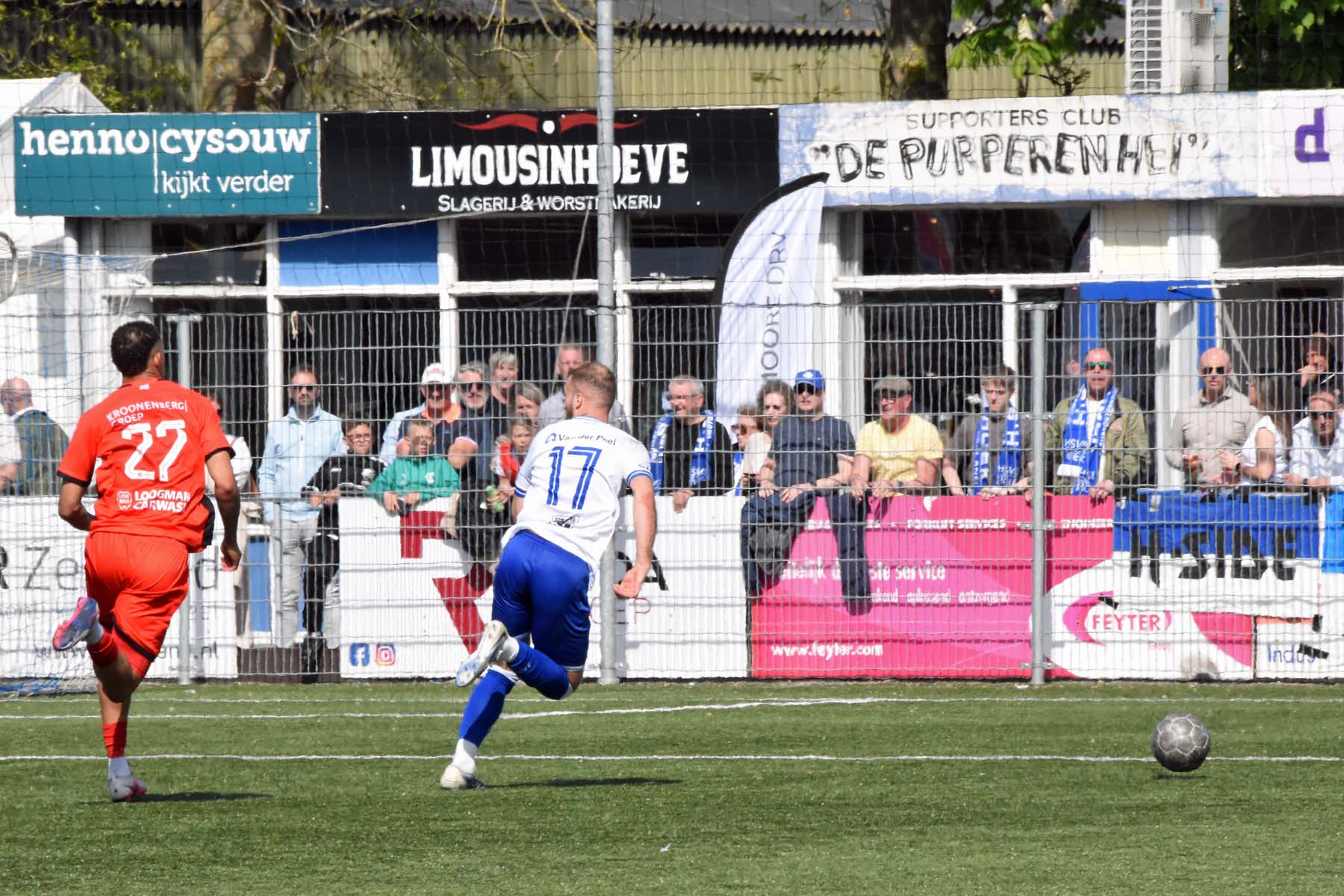 veel supporters van HSV Hoek vragen zich af "is die bal over de lijn?"