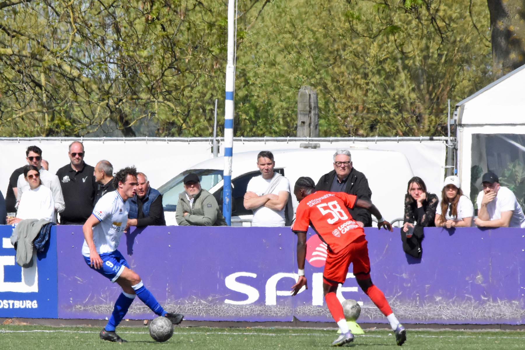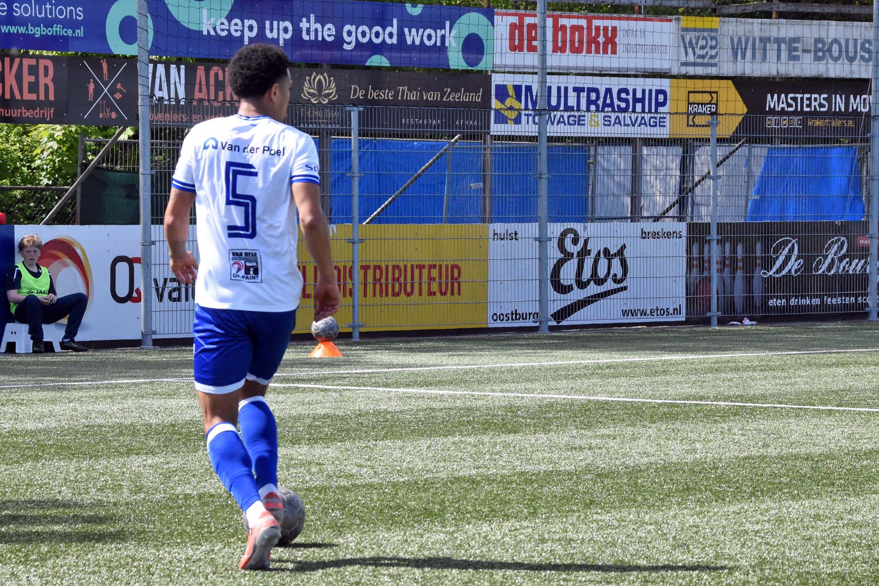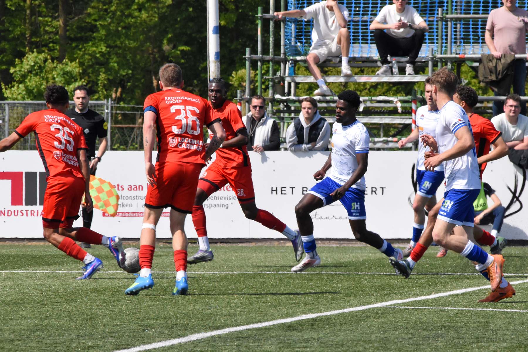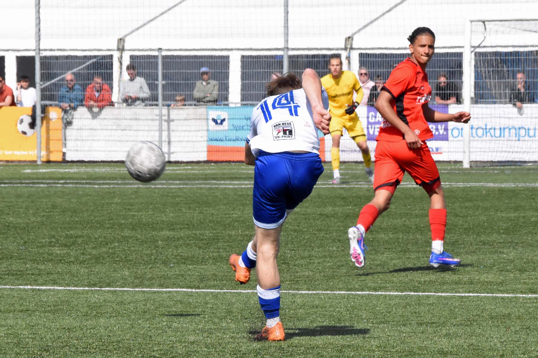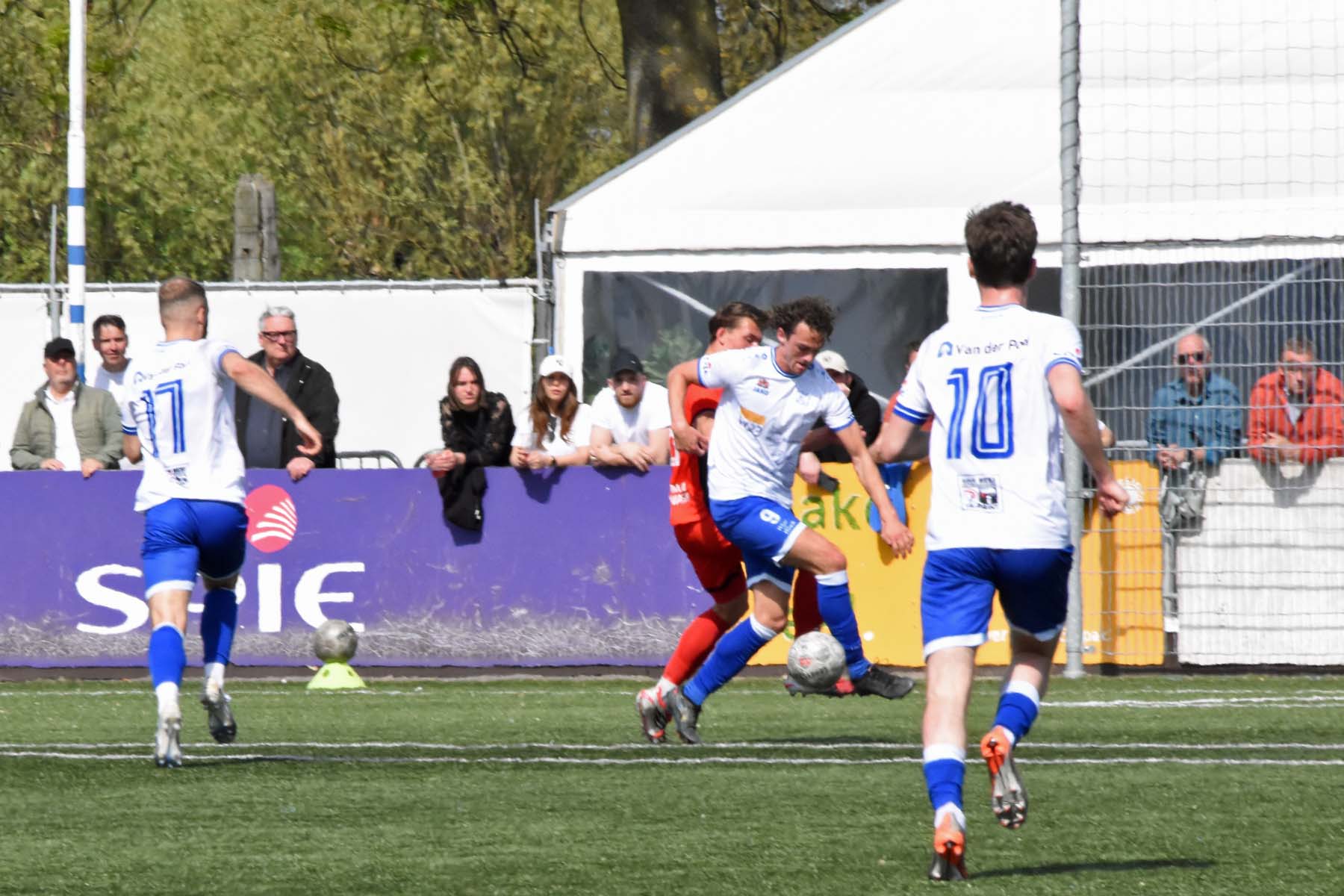 de bal breed te leggen, helaas achter spits Din Sula. De supporters van HSV Hoek vragen zich af "Waarom schoot hij niet zelf?"