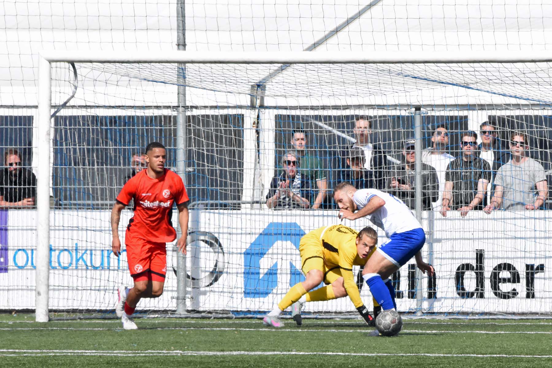 Yanilio de Nooijer oog in oog met de keeper van Jong Almere City..