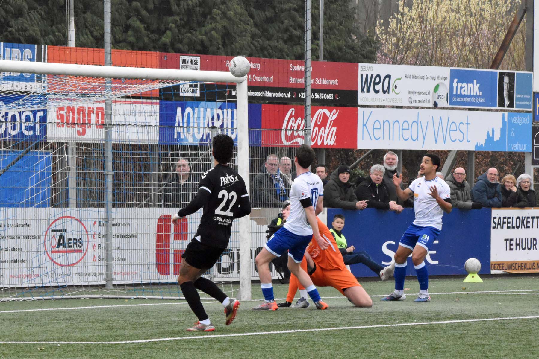 Hoek was even aangeslagen, maar herpakte zich vrij snel. Noah Aelterman kreeg de uitgelezen kans op de gelijkmaker toen hij van dichtbij werd aangespeeld. Vanaf een meter of twee leek scoren eenvoudiger dan missen, maar zijn poging ging over het doel.