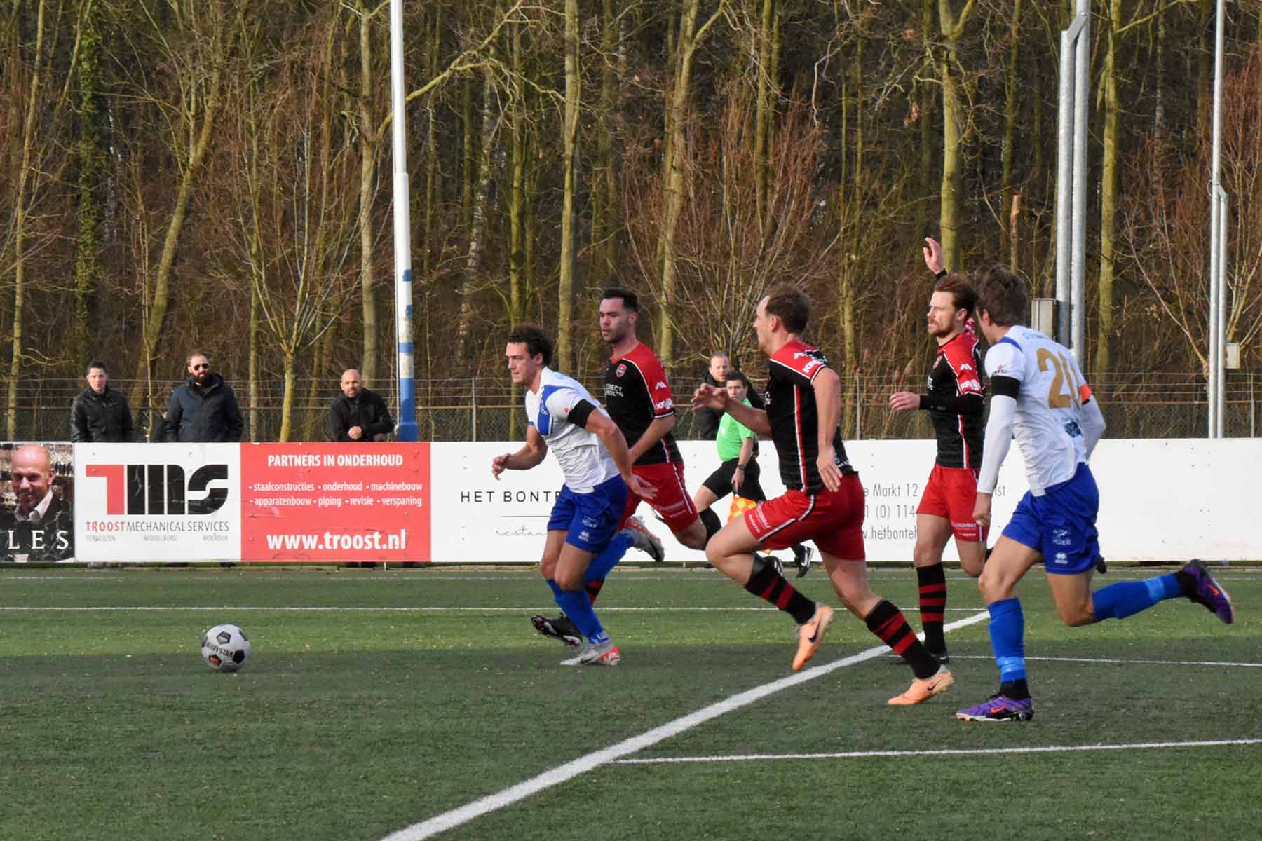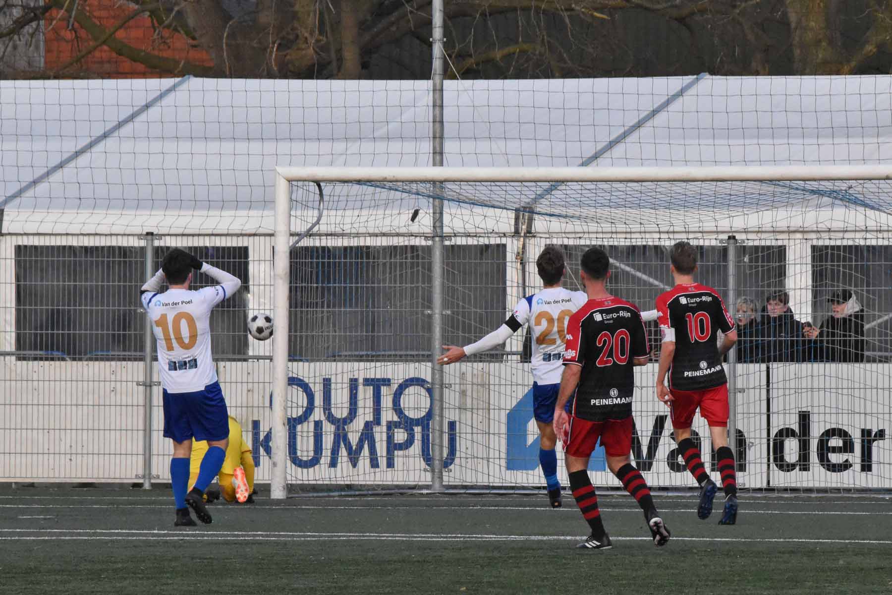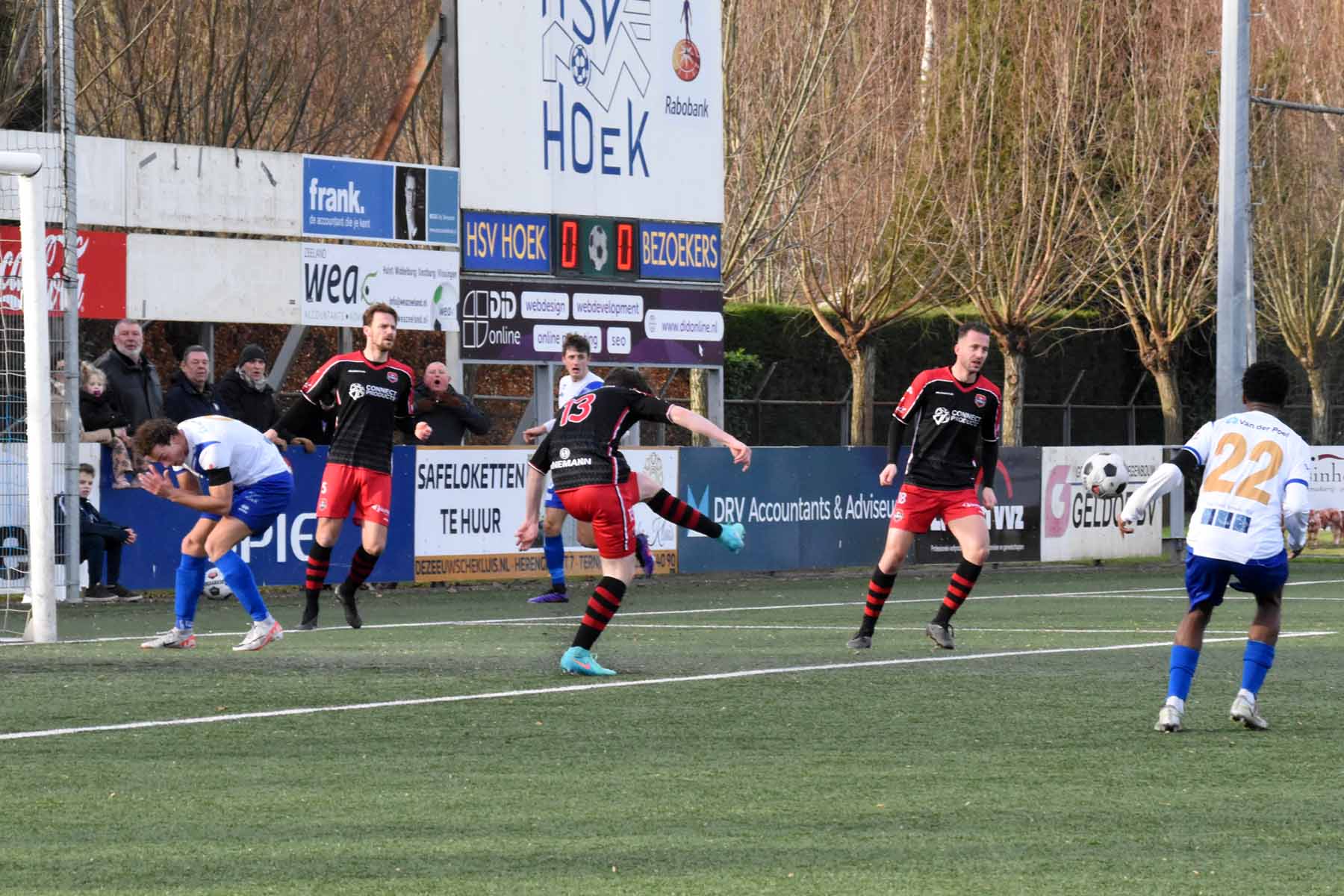Sylvio Hage kan verder, lopen de spelers van HSV Hoek elkaar nu in de weg?...